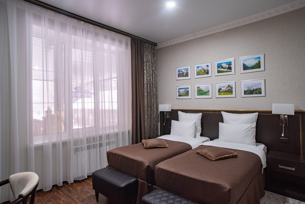 Долго выбирали отель, и не ошиблись! Чудесное место, внимательный персонал, очень вкусные и разнообразные завтраки, расположение великолепное! Выходя утром сразу счастлив: горная река, тишина и могучие горы) прошел 5-10 минут и ты в центре Домбая или на любом из главных пеших маршрутов к водопадам. Отдых прошел в комфорте, спасибо Таурух!)