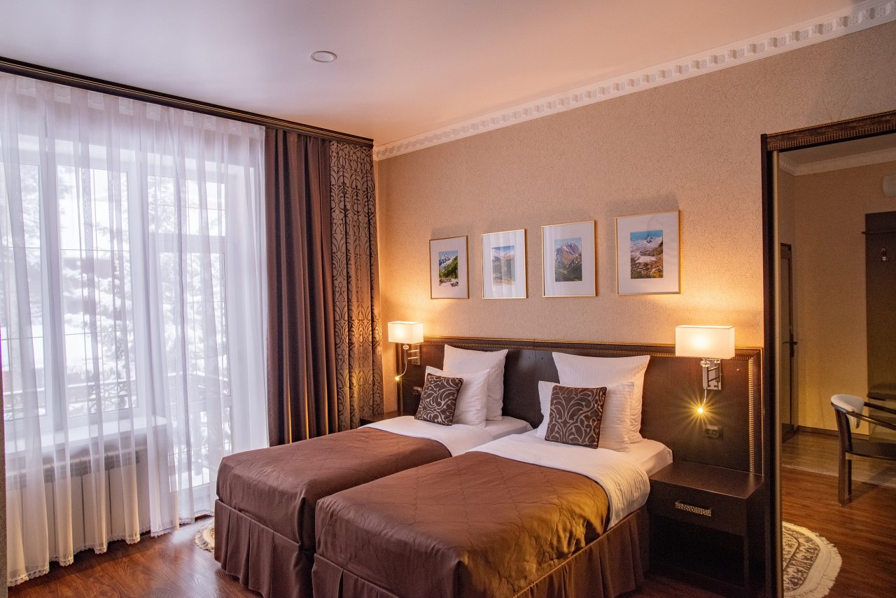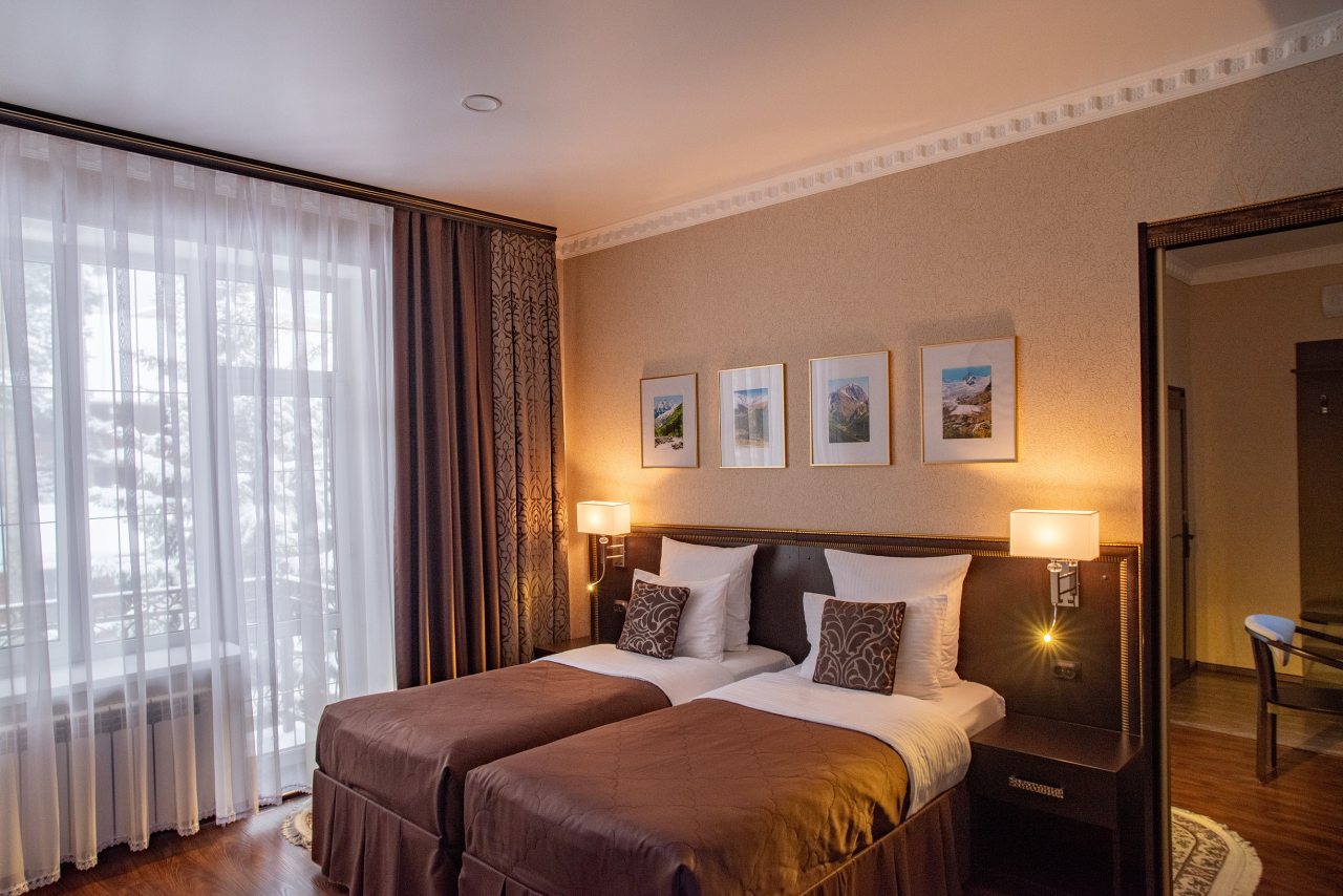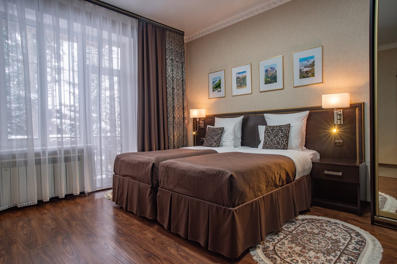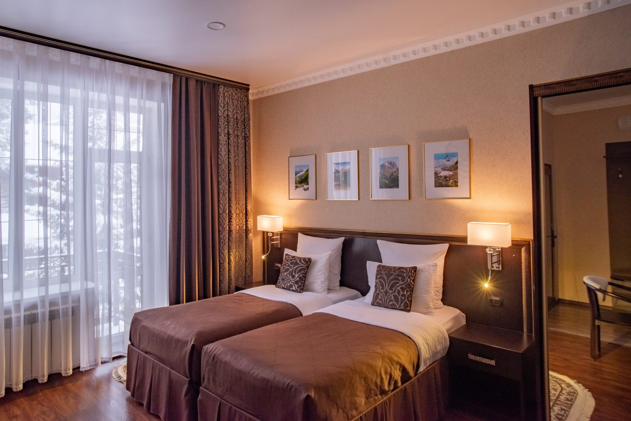 В стоимость проживания был включен вкусный завтрак, благодаря которому не пришлось думать об утренней трапезе. Что экономило и время, и энергию, и деньги. Сотрудники здесь приветливые и отзывчивые. Наш номер был оснащен качественной мебелью и современной техникой. Ванная комната была чистая, перебоев горячей или холодной воды не было. Какой вид на горы здесь открывается словами не описать! Мы будто зарядились энергией и силой природы. Когда опять приедем на Домбай, остановимся исключительно здесь!