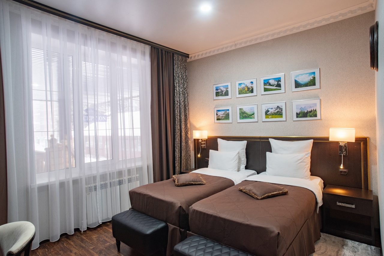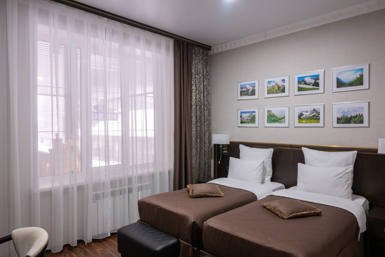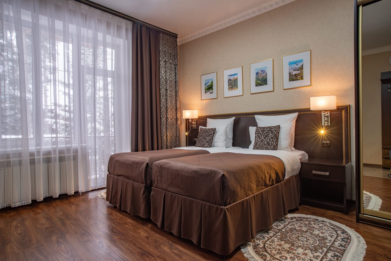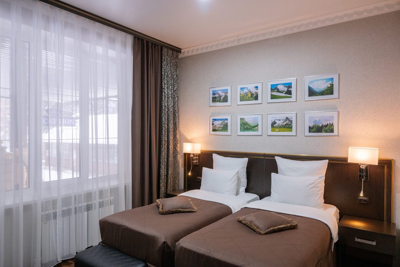 В стоимость проживания был включен вкусный завтрак, благодаря которому не пришлось думать об утренней трапезе. Что экономило и время, и энергию, и деньги. Сотрудники здесь приветливые и отзывчивые. Наш номер был оснащен качественной мебелью и современной техникой. Ванная комната была чистая, перебоев горячей или холодной воды не было. Какой вид на горы здесь открывается словами не описать! Мы будто зарядились энергией и силой природы. Когда опять приедем на Домбай, остановимся исключительно здесь!