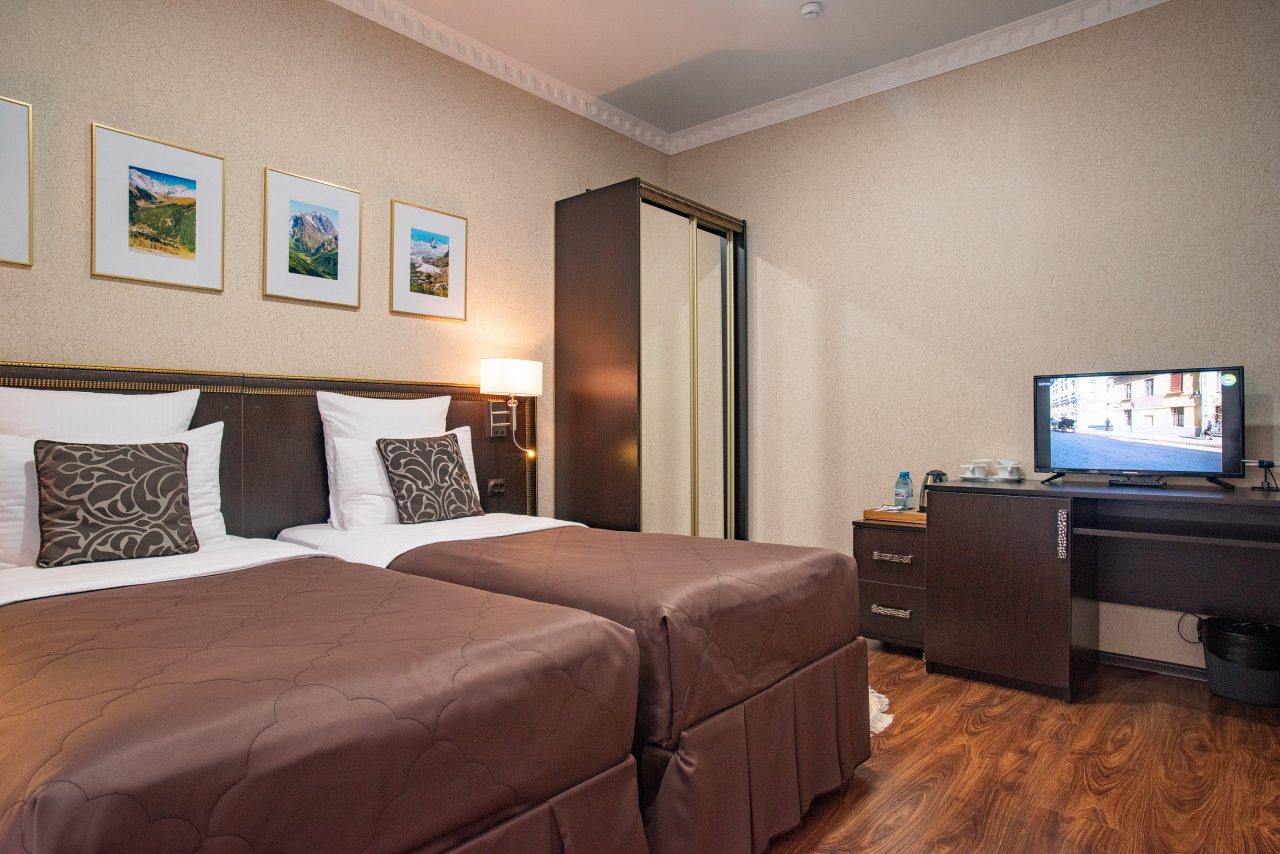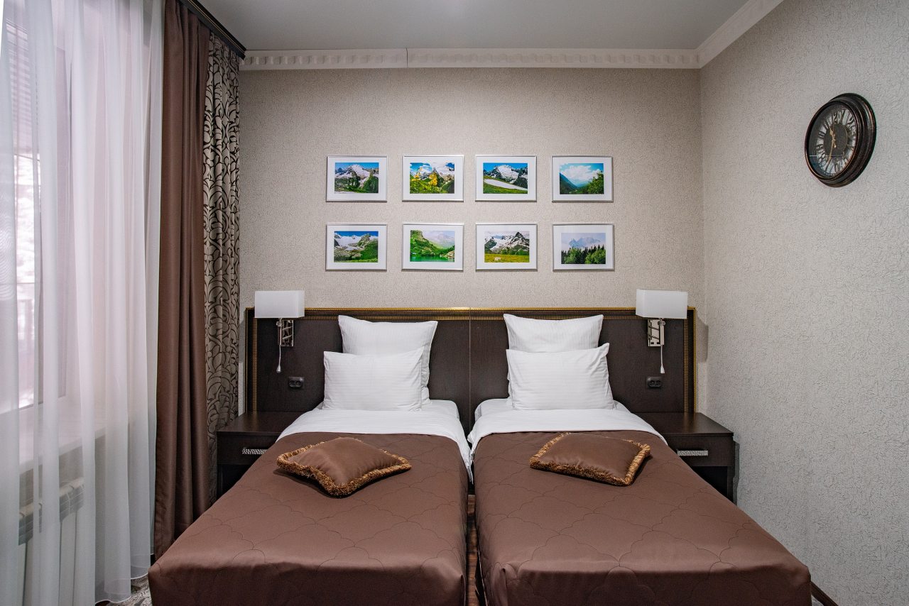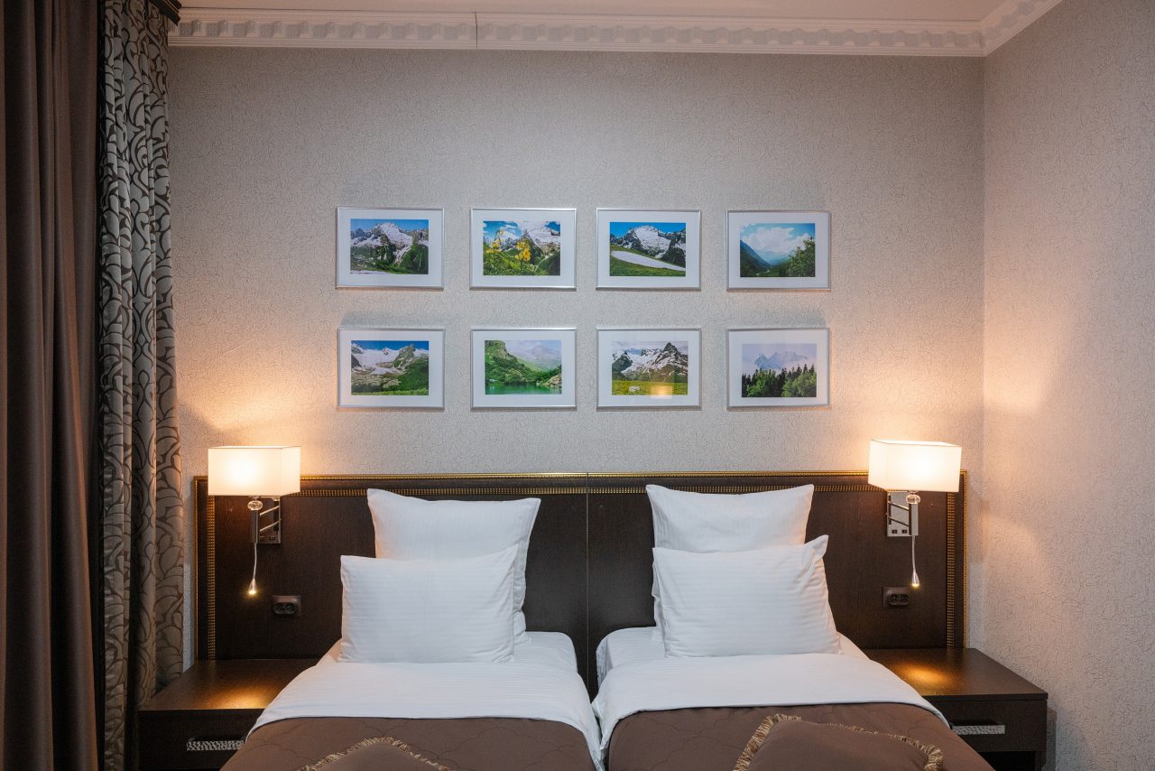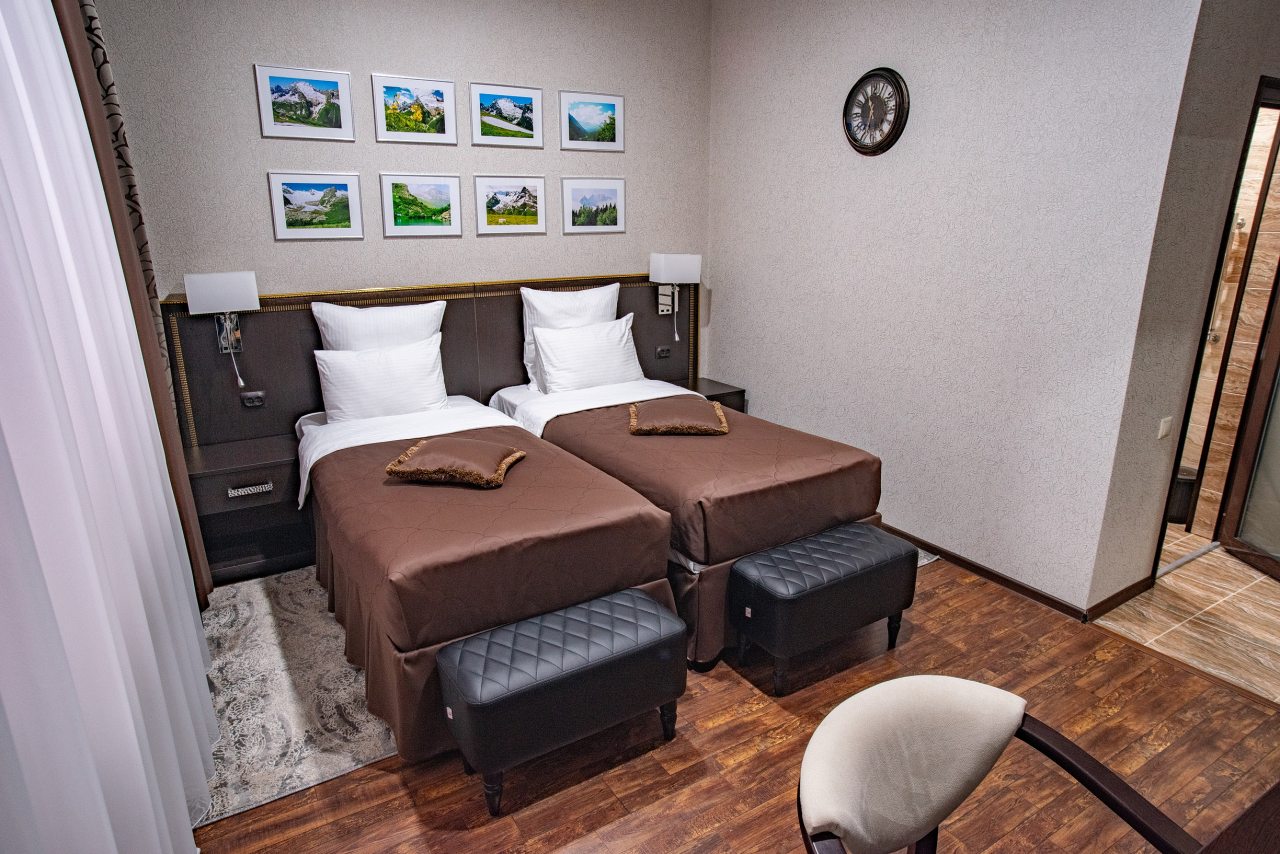 В стоимость проживания был включен вкусный завтрак, благодаря которому не пришлось думать об утренней трапезе. Что экономило и время, и энергию, и деньги. Сотрудники здесь приветливые и отзывчивые. Наш номер был оснащен качественной мебелью и современной техникой. Ванная комната была чистая, перебоев горячей или холодной воды не было. Какой вид на горы здесь открывается словами не описать! Мы будто зарядились энергией и силой природы. Когда опять приедем на Домбай, остановимся исключительно здесь!