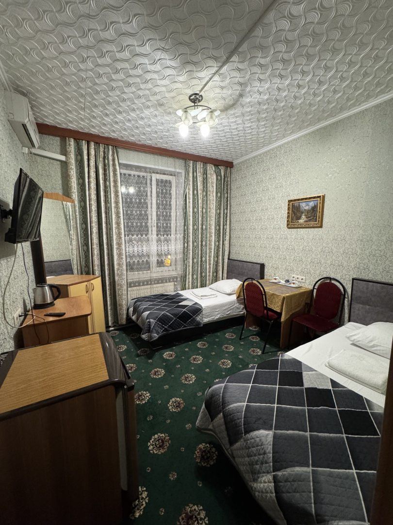 Скромный бюджетный отель. Полностью оправдывает свою цену. В номерах холодильники и телевизоры старого образца, но работают и хорошо, что вообще есть. Все чисто. Кровати удобное, хоть и тоже уже повидали многое. Ремонт средний. Тихо. Для командировок и ночевок пойдет.