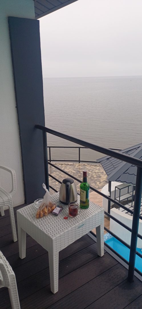 Кулер и микроволновка на этаже , балкончик со столиком , чайник в номере !