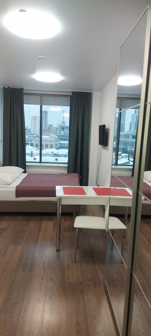 Вид из окна чудесный и днем и особенно ночью, весь город, как на ладони и переливается, светится разными огнями.