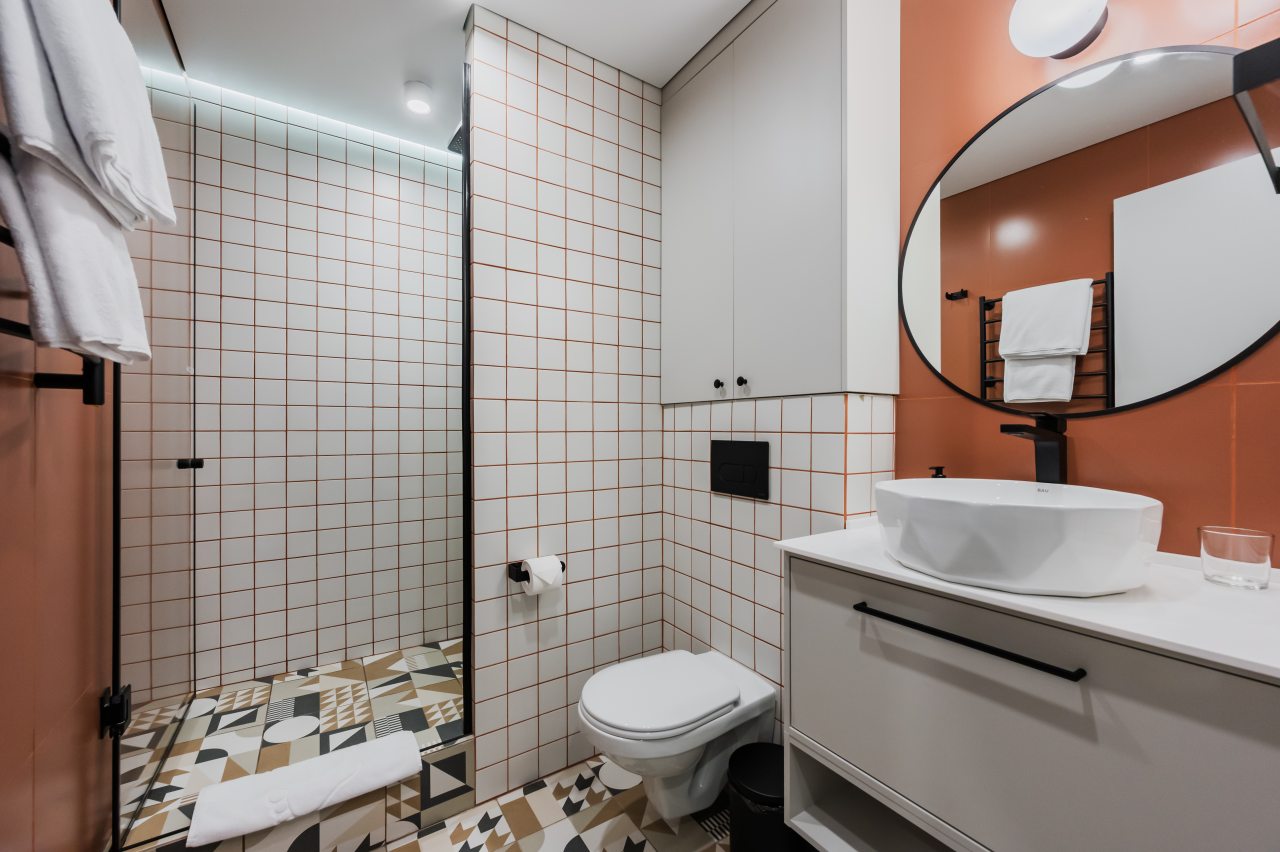 Оригинальные апартаменты, как и сам апарт-отель. Для творческих людей и молодежи в самый раз. Мы с супругой занимали двухместный стандарт с одним двуспальным диваном. Но даже нам понравилось, несмотря на то, что мы люди среднего возраста. Все как-то так современно и оригинально. Много света, интересного декора. Но при этом всем как-то практично и надежно. Рекомендуем!
