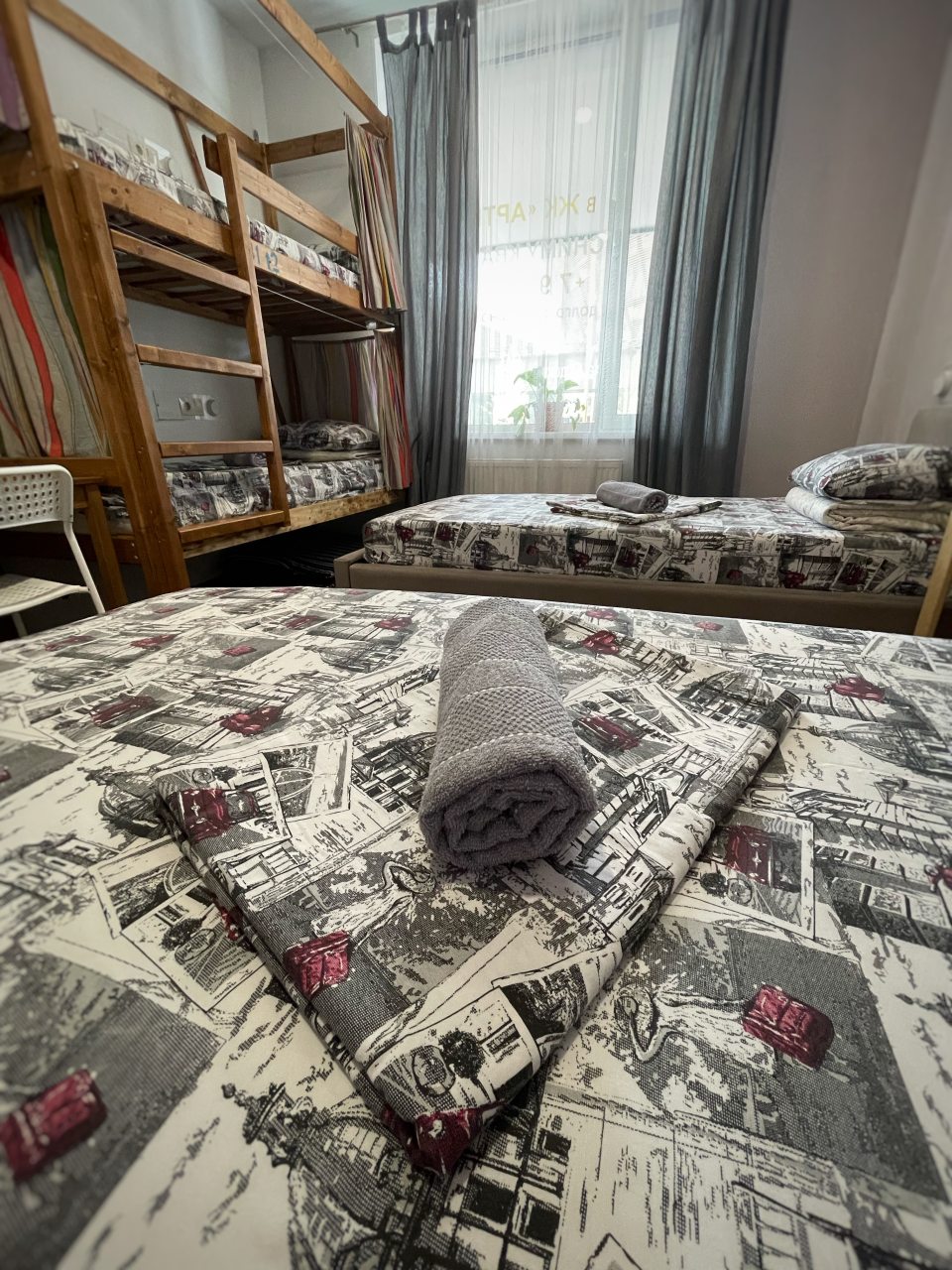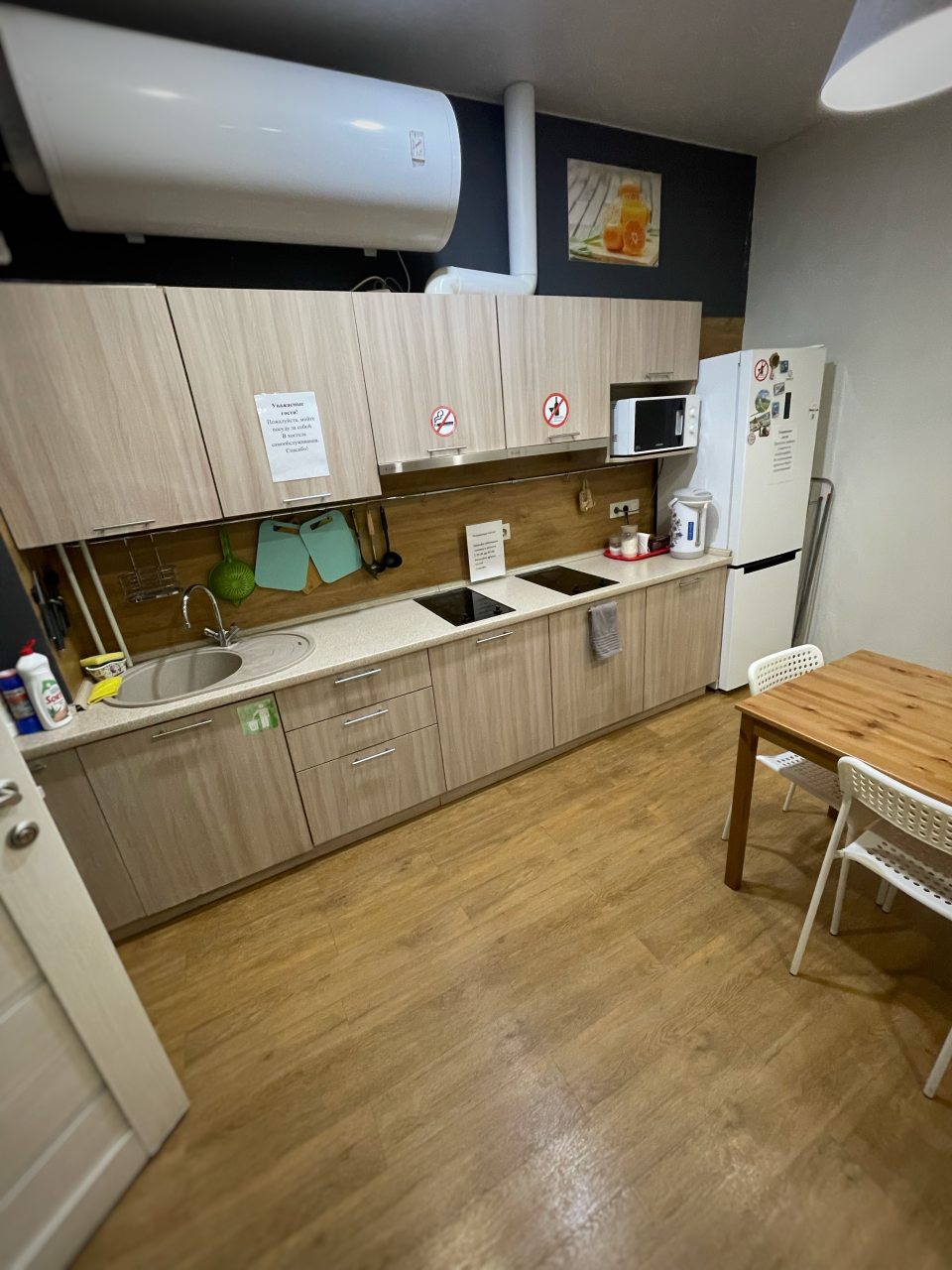 Из недостатков: не знаю кто моет посуду, но после предыдущих гостей чайник и кружки были грязные. Хотя налет от чая или кофе легко отмывается. Воду покупать нужно свою. Кулера нет. Очень душно, вентиляция не работает. Спасли открытые окна. В коридорах на всех этажах жутко душно и жарко)) Постельное белье только на двоих, хотя бронировали на троих чел. А вот одел и подушек даже на 4 чел. было.