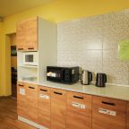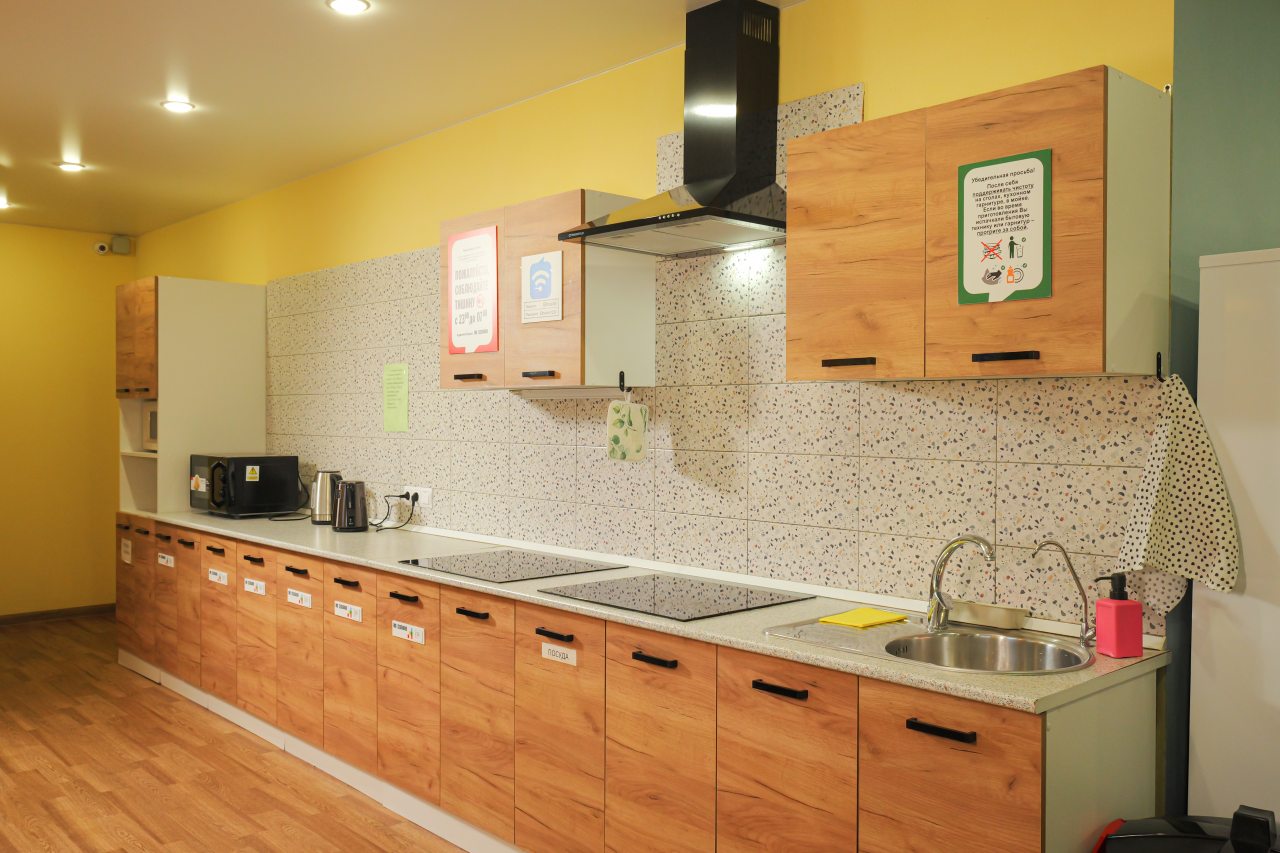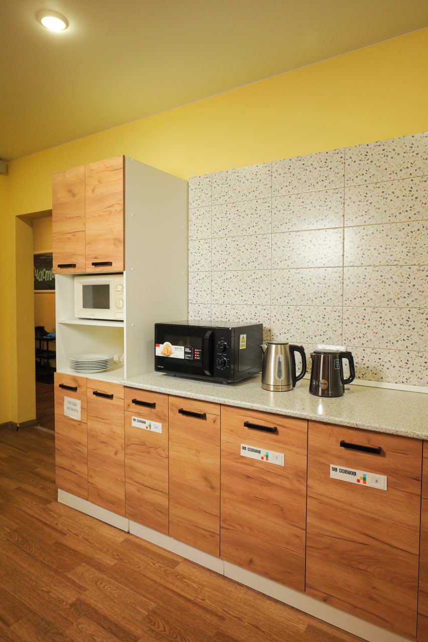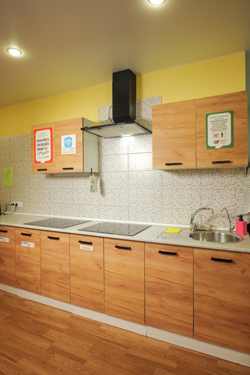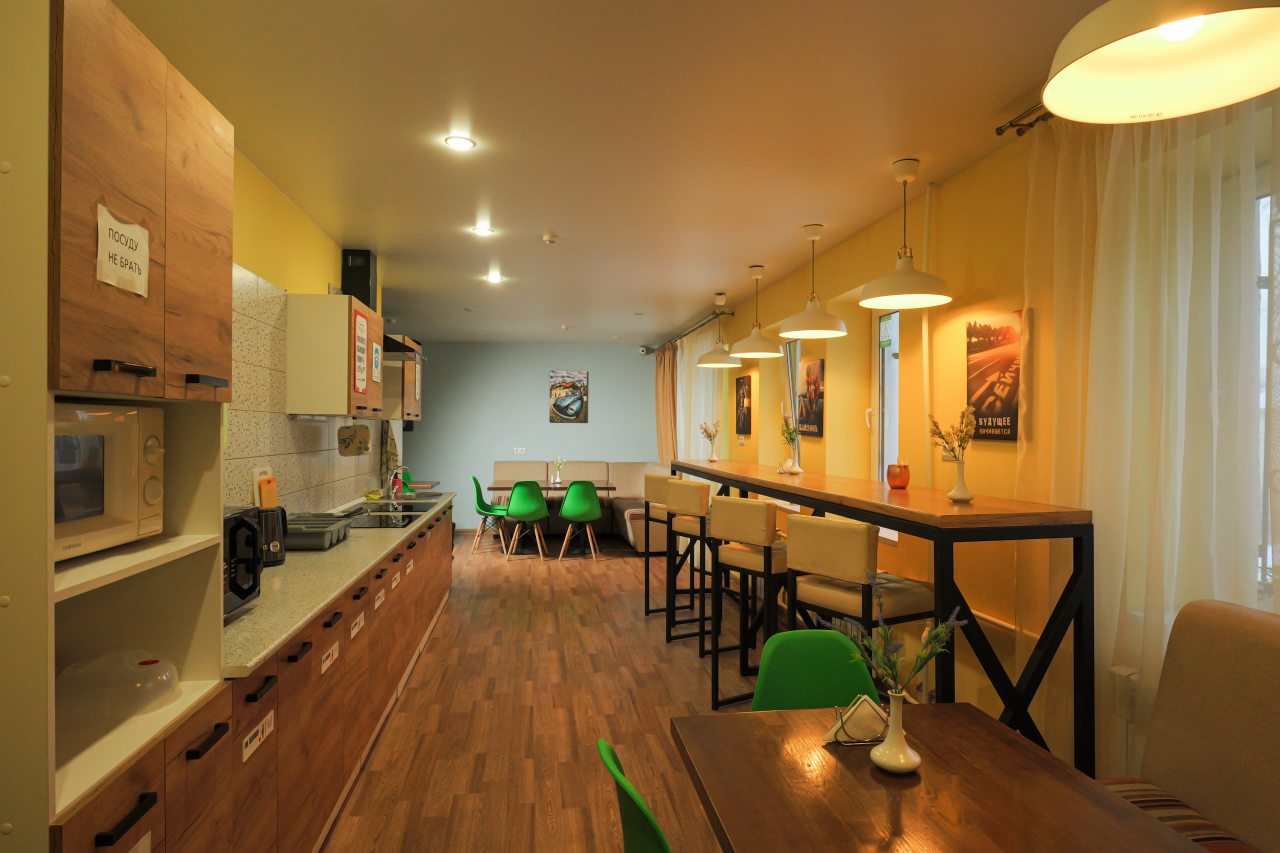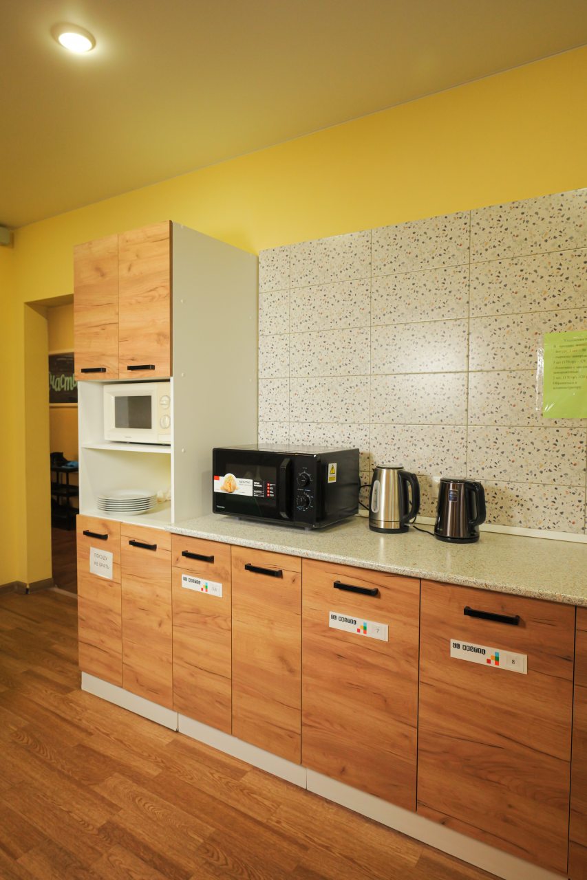 Мы приехали поздно ночью. Несмотря на это, нас приветливо встретили на ресепшен, показали номер, кухню. Номер хоть и небольшой, но очень уютный и чистенький. В санузле и кухне тоже очень чисто. Кухня вообще напоминает мини кафе. Мы путешествовали с котом. За его размещение доплатили 500 руб. Ему вроде тоже понравилось)