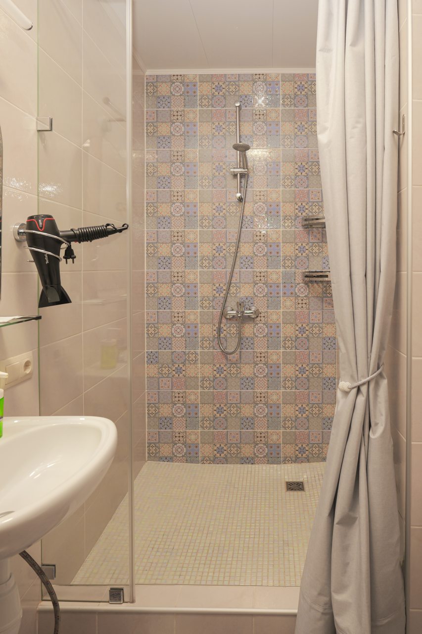 Из недостатков: ковёр в номере и шторку для душа уже пора поменять.