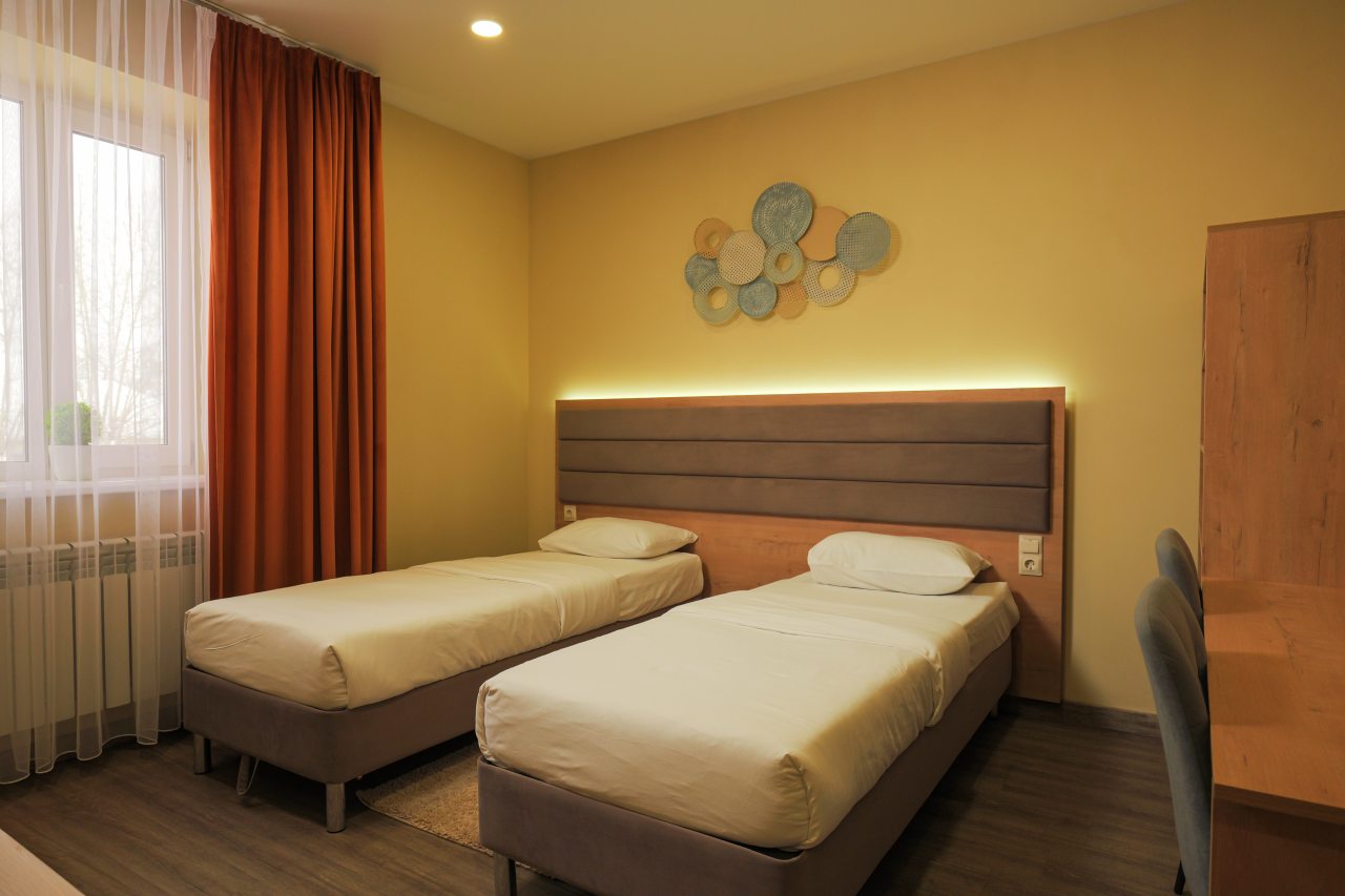 Приятный отель, останавливались здесь ненадолго. Номер нам быстро подобрали, заселились тоже быстро. Приятные сотрудники, все рассказали и показали. В номере отличный ремонт, проживать было комфортно.