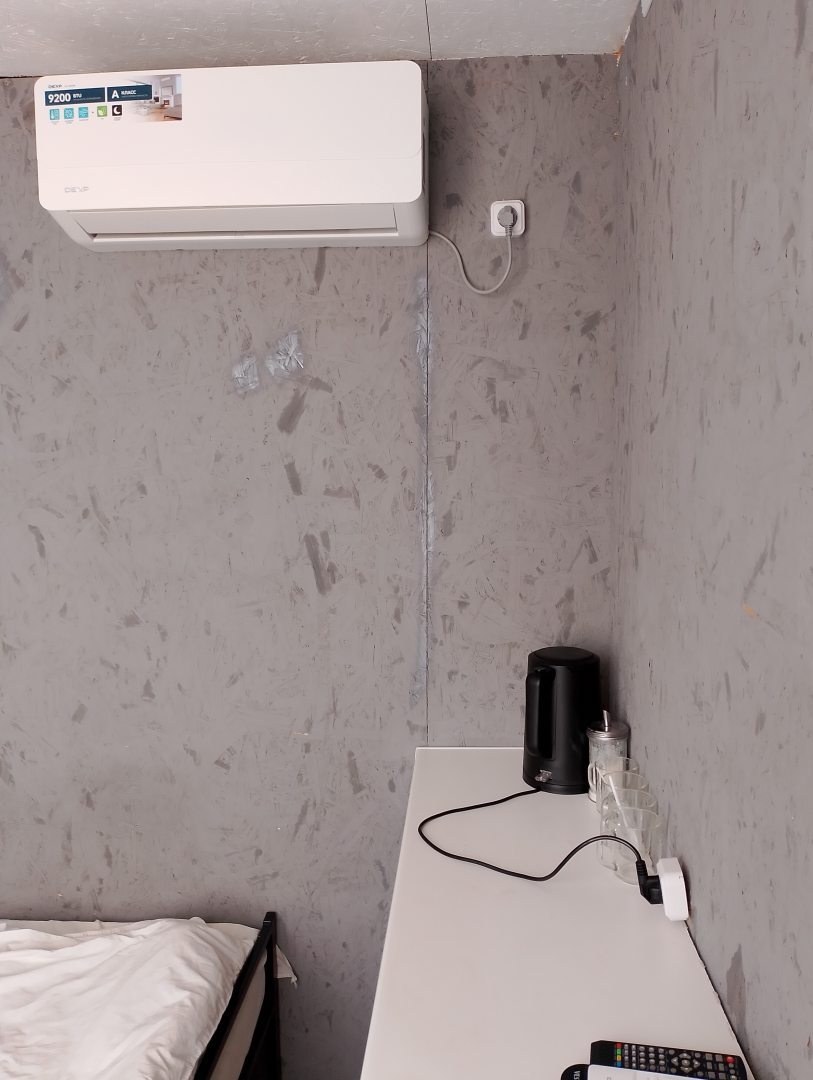 Заселение в любое время, есть своя парковка. Номер очень чистый. Все необходимое предоставили. Есть вайфай. Есть общий холодильник, кулер с водой. Все отлично