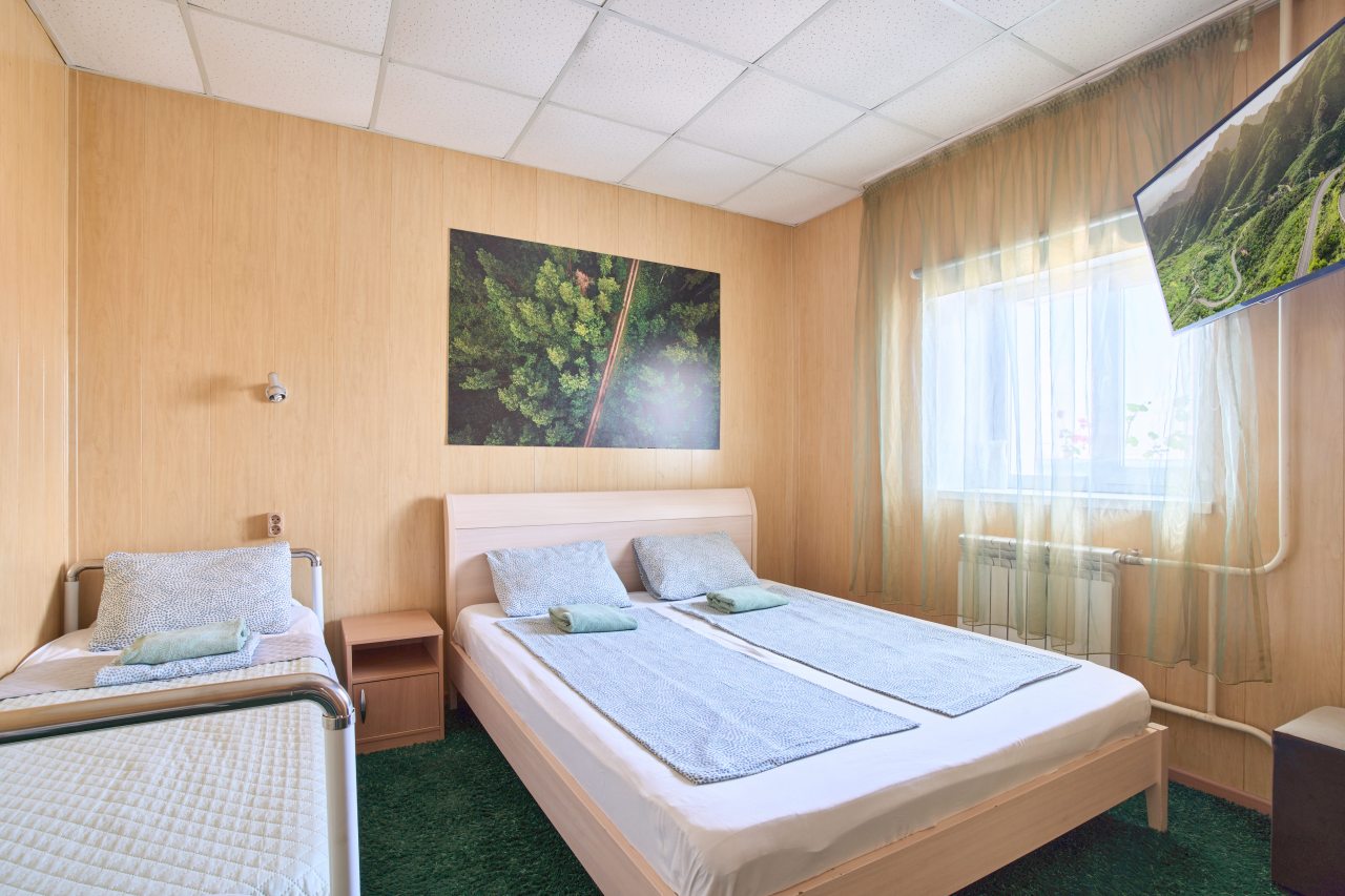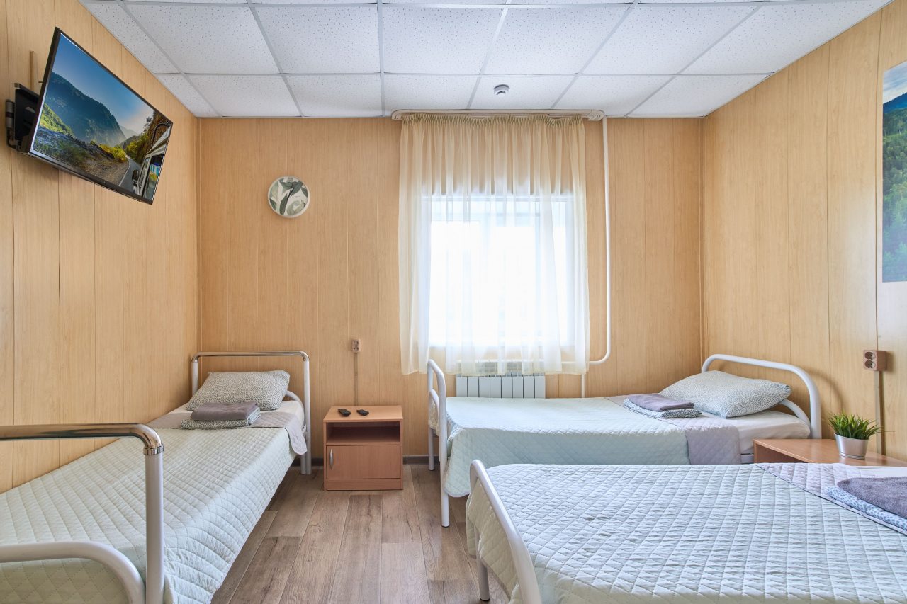 Сопровождала детей на спортивные сборы и вчетвером жить в отеле или квартире Красноярска было накладно. А этот гостевой дом как раз отлично подошел. Старшие мальчишки с удовольствием по очереди на «втором этаже» двухэтажной кровати спали. И ехать в Краснодар по мимо проходящей трассе очень удобно.