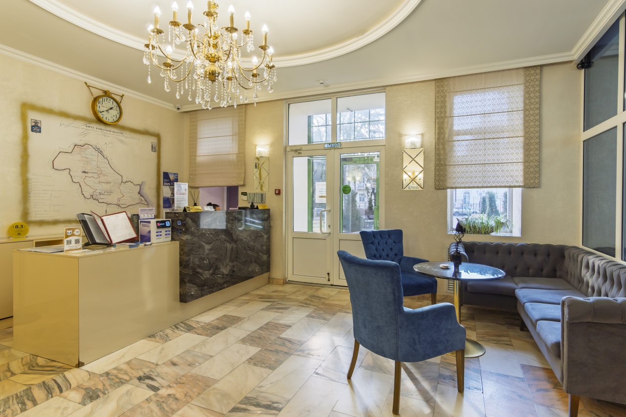Отличное расположение, на тихой улочке недалеко от жд вокзала. Своя территория с беседками, розарием, клумбами и дорожками. Курортный парк в 3х минутах ходьбы, рядом магазины "Магнит" и "Пятерочка", в гостинице есть своя столовая и лечебно-оздоровительный комплекс с отделением китайской медицины, грязелечением, ваннами и массажем. Персонал профессиональный. Уборка ежедневная, идеальная, в номере телевизор, чайник, чашки, пакетики чая, сахар, в ванной - одноразовые гели, шампуни и мыло. Номера новые и чистые.