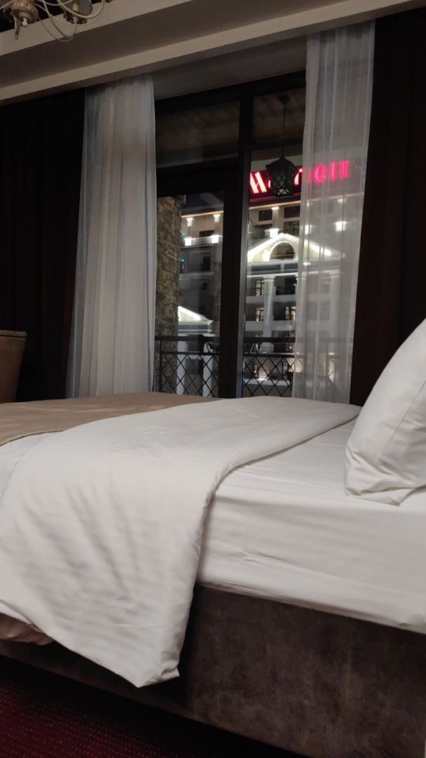 Здраствуйте, проживала мама с двумя дочками 16 лет. С 08.06-10.06.25, понравилось все!!!! Жили на 3 эт., в отеле есть лифт, дверь за Вами открывают и закрывают, вещи Вам принесут в номер, все улыбаются. В номере чисто, есть фен, гладильная доска, утюг, сейф, тапочки, халаты, зубные щетки с пастой, расческа, пилочка для ногтей, палочки ушные, диски ватные, гель для душа, шампунь, бальзам для волос. До канатки 600 м, все кафе, бары, рестораны, пяторочка, перекресток, аптека возле Отеля). В Спа и в бассейне открытом свои полотенца, из номера брать не нужно)). Завтрак- шведский стол- вкусный, свежий, разнообразный. Всем рекомендую и родителям с маленькими детками и взрослым!!!! Всех Благодарю!!!!