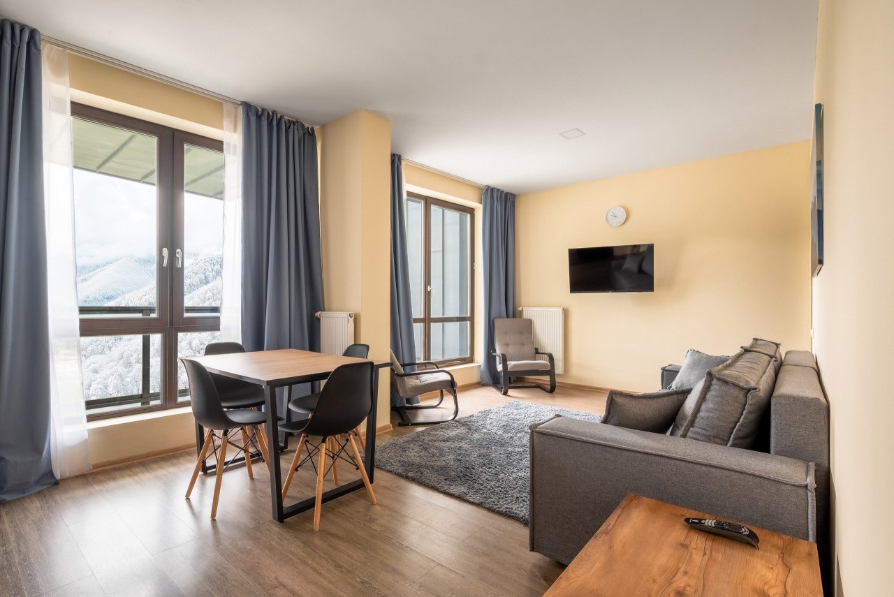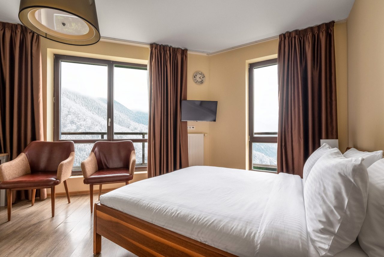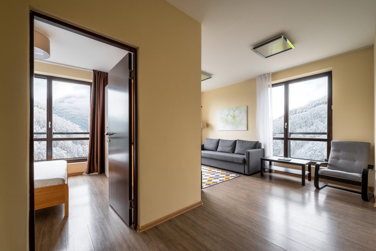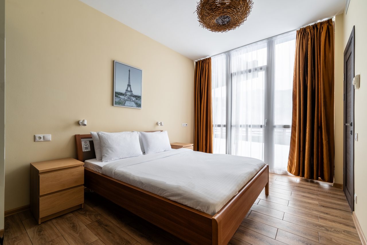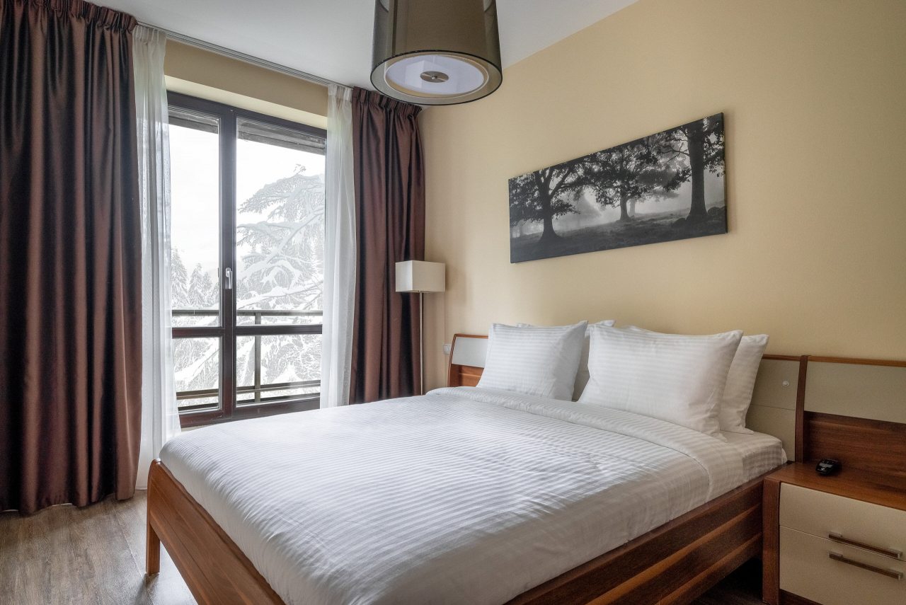 Очень просторный номер и очень удобная планировка. Шйкарный вих на горы и подъемник, именно то что я искала. До розы Хутор и назад ездит шаттл каждый час туда, и обратно. Вежливый персонал хороший расторан+ наличие парковки.