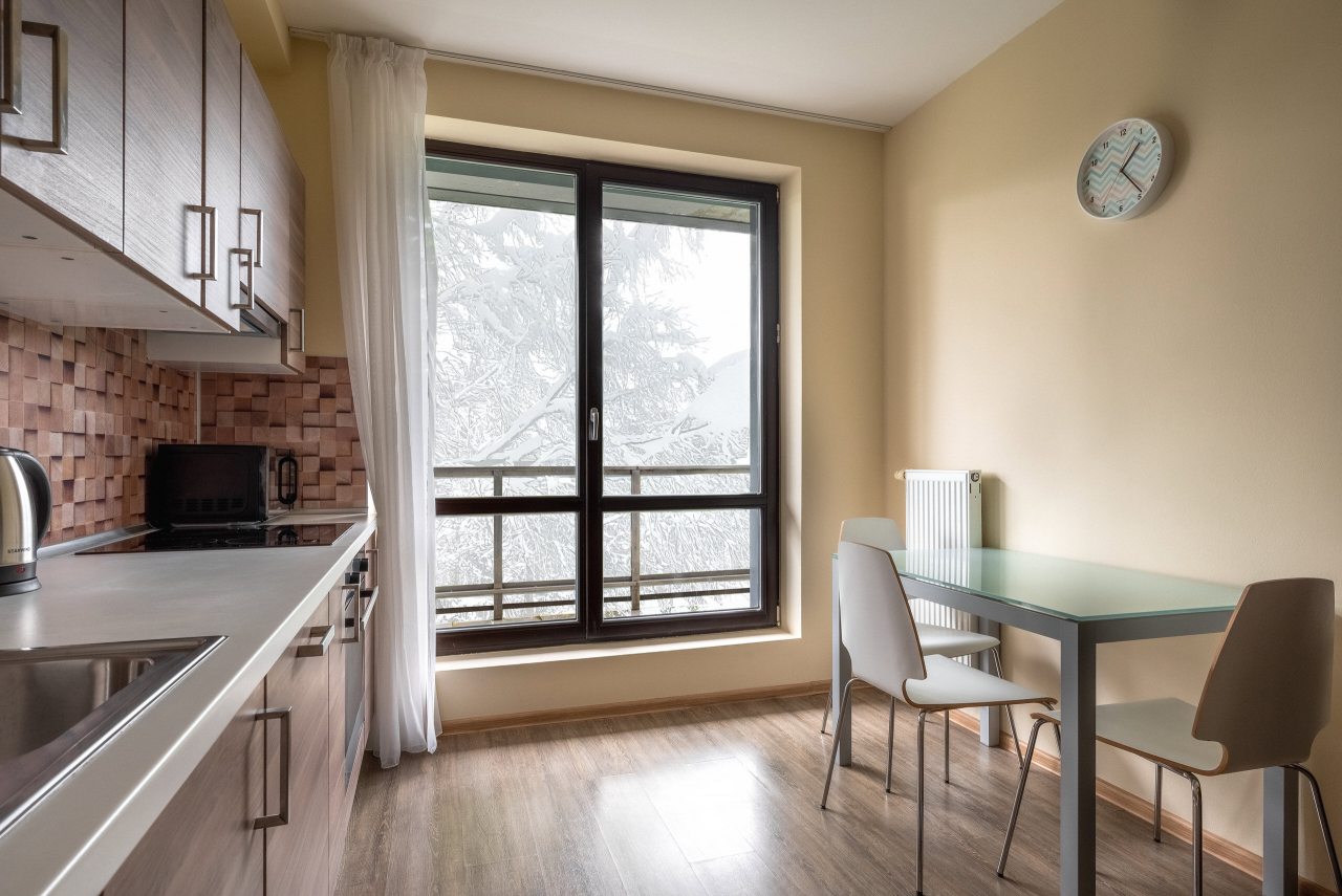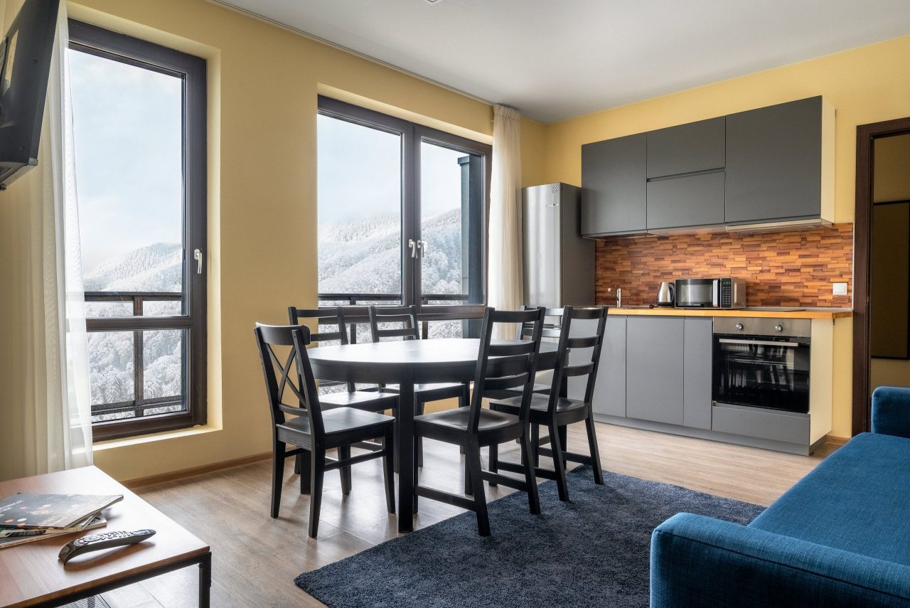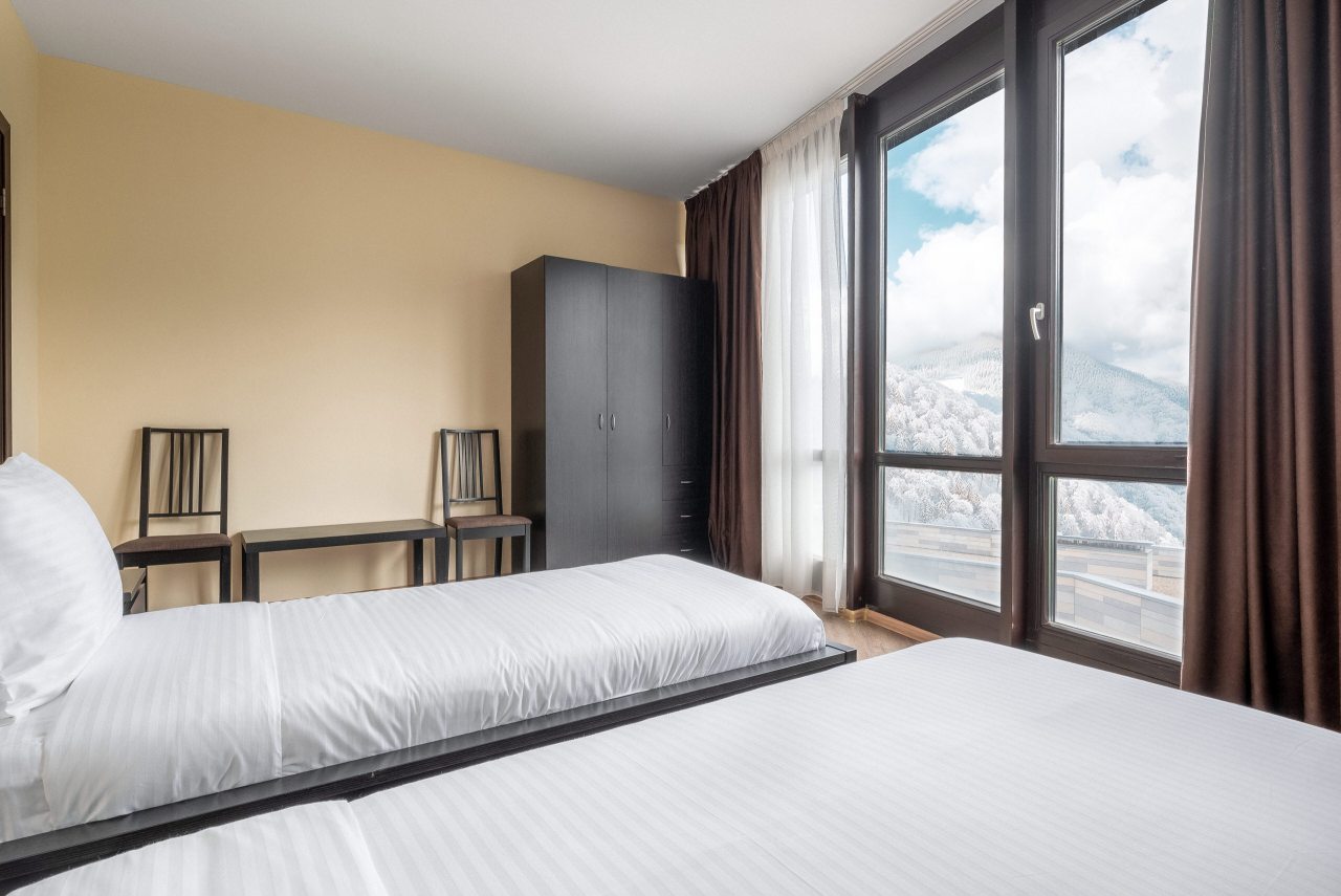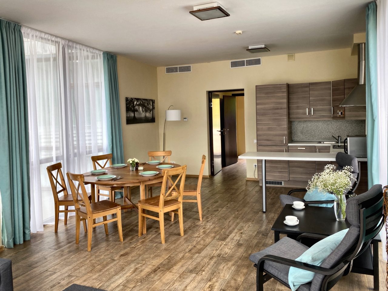 Очень просторный номер и очень удобная планировка. Шйкарный вих на горы и подъемник, именно то что я искала. До розы Хутор и назад ездит шаттл каждый час туда, и обратно. Вежливый персонал хороший расторан+ наличие парковки.