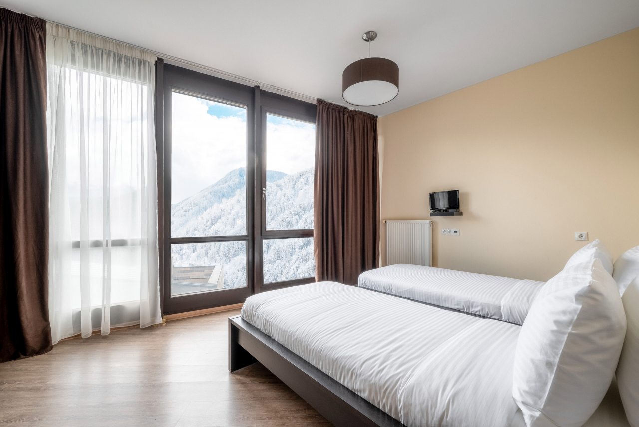 Из недостатков: не то чтобы не понравилось, скорее было бы неплохо чуть улучшить: добавит в номер пакетики чая, кофеварки поставить капсульные, халаты. В моем номерки не было крема для тела, иногда был нужен. Нет бассейна и бани. Нет возможности спуска на лыжах после катания, хотя отель прям на горе, рядом с трассой. Говорят в целях безопасности.