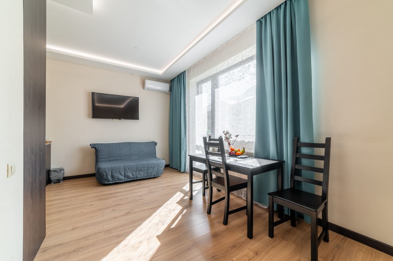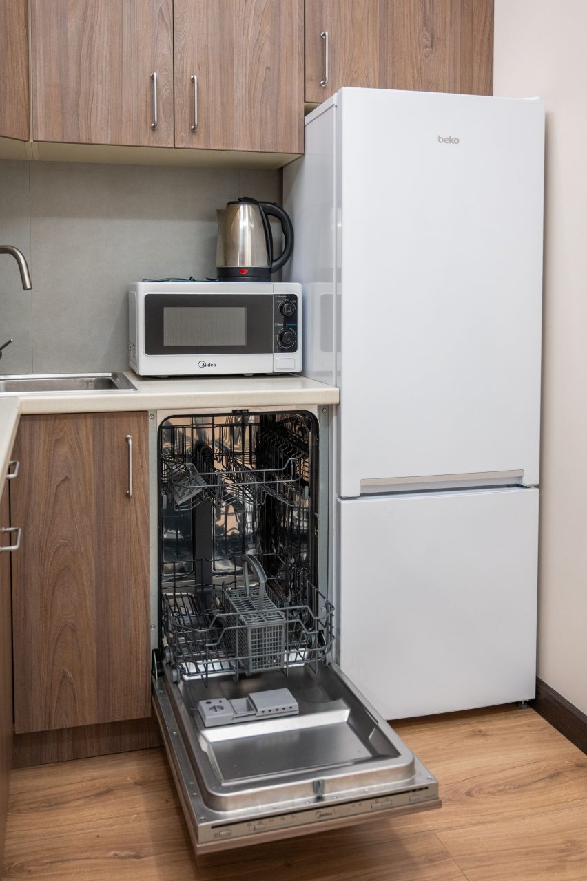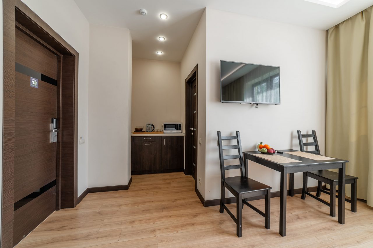 Несмотря на краткое пребывание, впечатления остались самые лучшие. В номере было много места, дополнительная кровать оказалась комфортной, а наличие кухонных принадлежностей, включая посудомоечную машину, очень порадовало. С парковкой проблем не возникло. Администратор встретила радушно, все подробно объяснила и показала. Если будет возможность, обязательно вернемся!