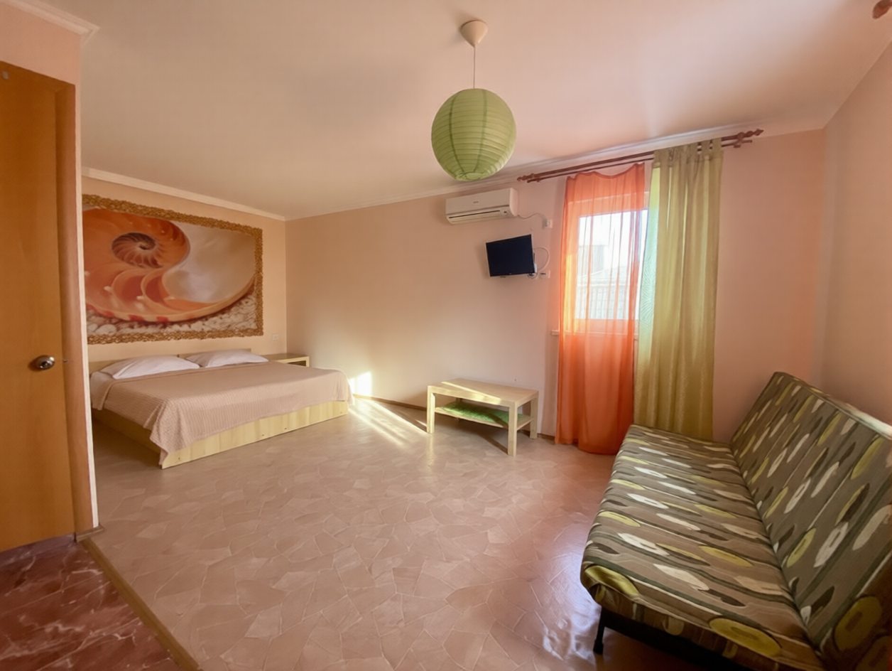 Расположение отличное, недалеко супермаркет, аптека, кафе и маленькие палатки с необходимыми вещами для пляжного отдыха. У отеля замечательная территория, ухоженно все, плодовые деревья и беседка для посиделок. Номер чистый, комфортный, есть кондиционер. Уборка каждый день. В отеле можно заказать завтрак. По приеду в город нас встретили на вокзале и привезли к отелю, за что огромная благодарность. При выезде из отеля нас так же отвезли на вокзал. Порекомендовали друзьям, по приезду в этот курортный город остановимся именно в этом отеле.