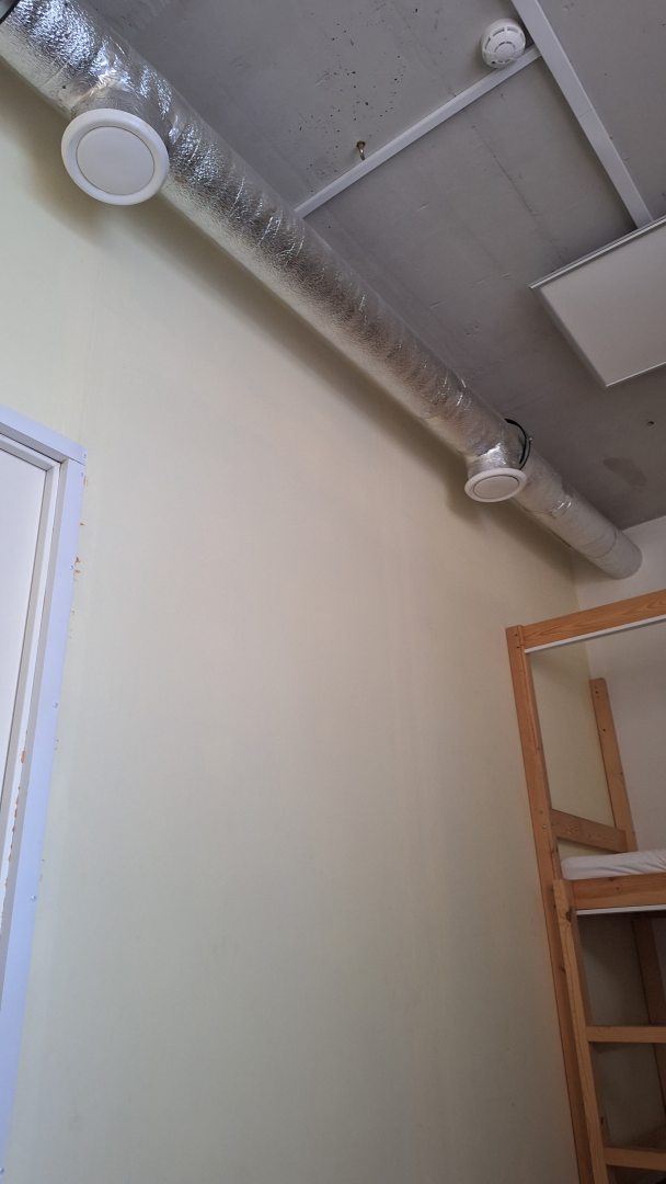 В комнате было прохладно, укрывалась одеялом. Через весь этаж проходит канальная вентиляция (с трубой по потолку), морозит сильно.