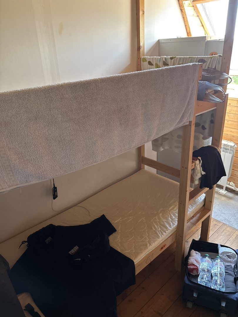 Из недостатков: грязновато. 1 душ не работает, 2 других в плачевном состоянии. Мусорные корзины все время полные. Пледы очень ветхие, видок у них пугает немного. Пару раз из 3-х дней моих отключали воду.