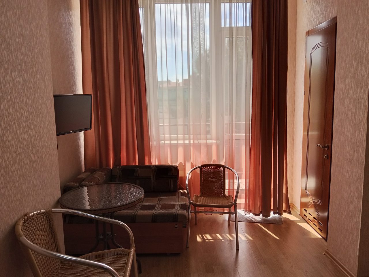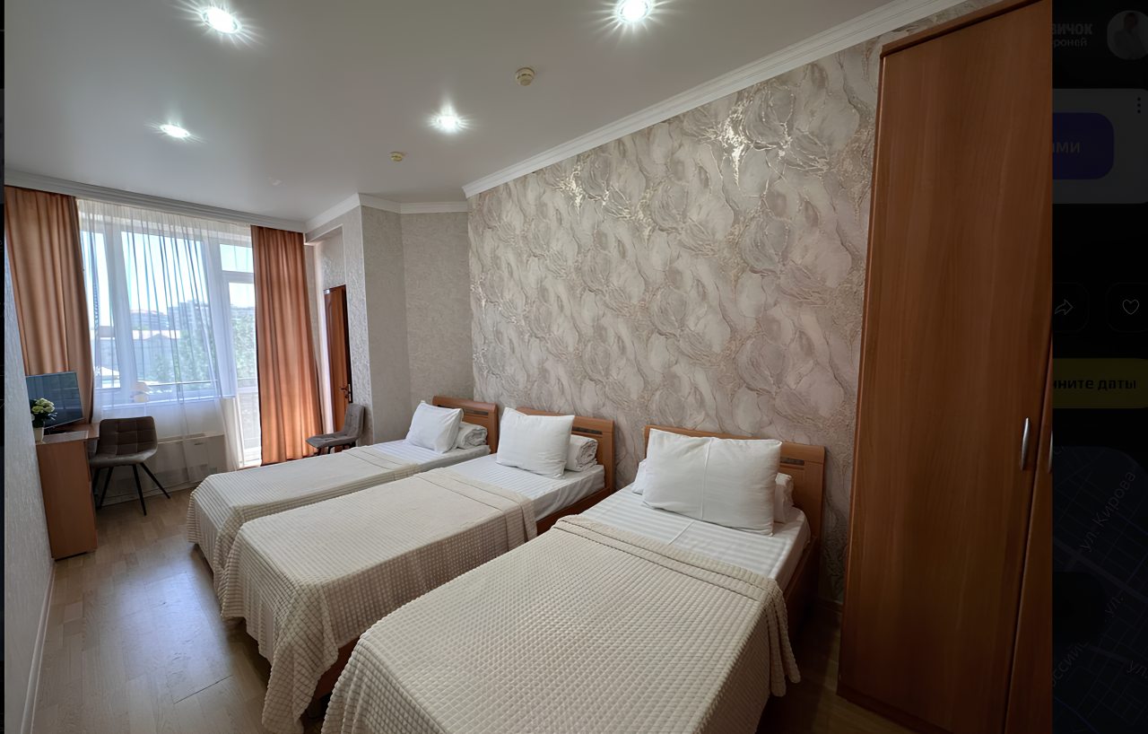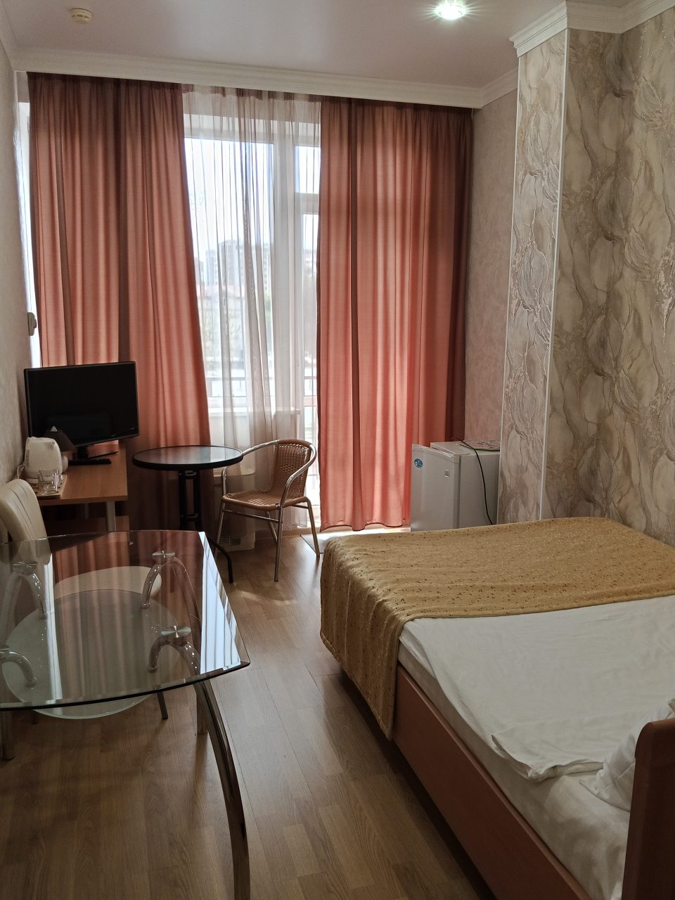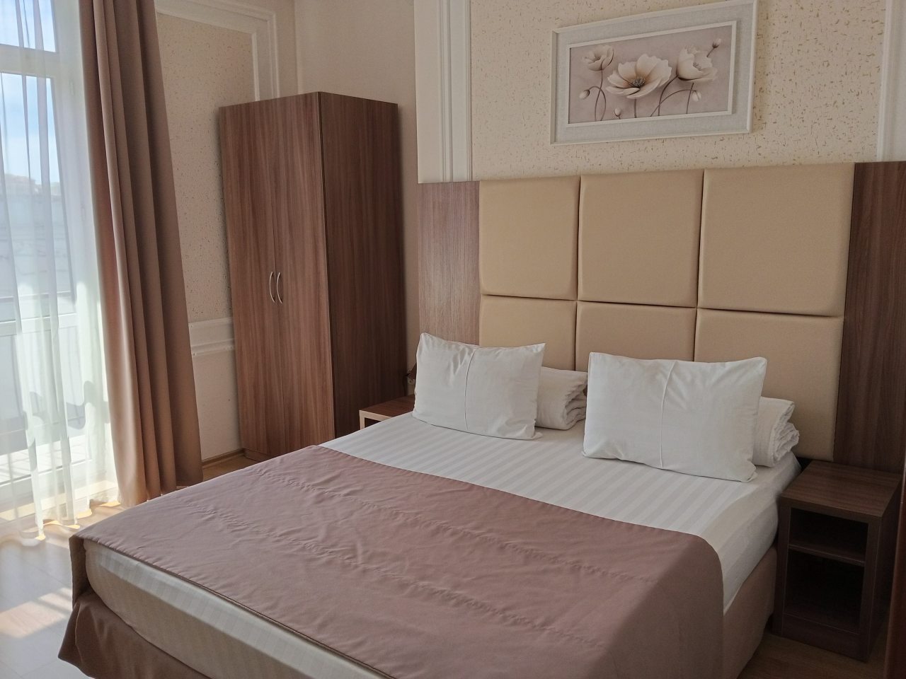 Здесь отличное все. Персонал приветливый и вежливый. Номер был просторный и очень уютный. Хорошо обставленный. На кровати постелен отличный матрас. Было чисто. Ходили по номеру в белых носках, остались чистыми, что вижу впервые. Стоимость более чем адекватная, учитывая расположение. Находится прямо у моря, почти на берегу. Звукоизоляция не идеальная, но это проблема многих гостиниц. Но нам по сути никто не мешал и мы не слышали шумов посторонних, спали спокойно. Рекомендую к проживанию.
