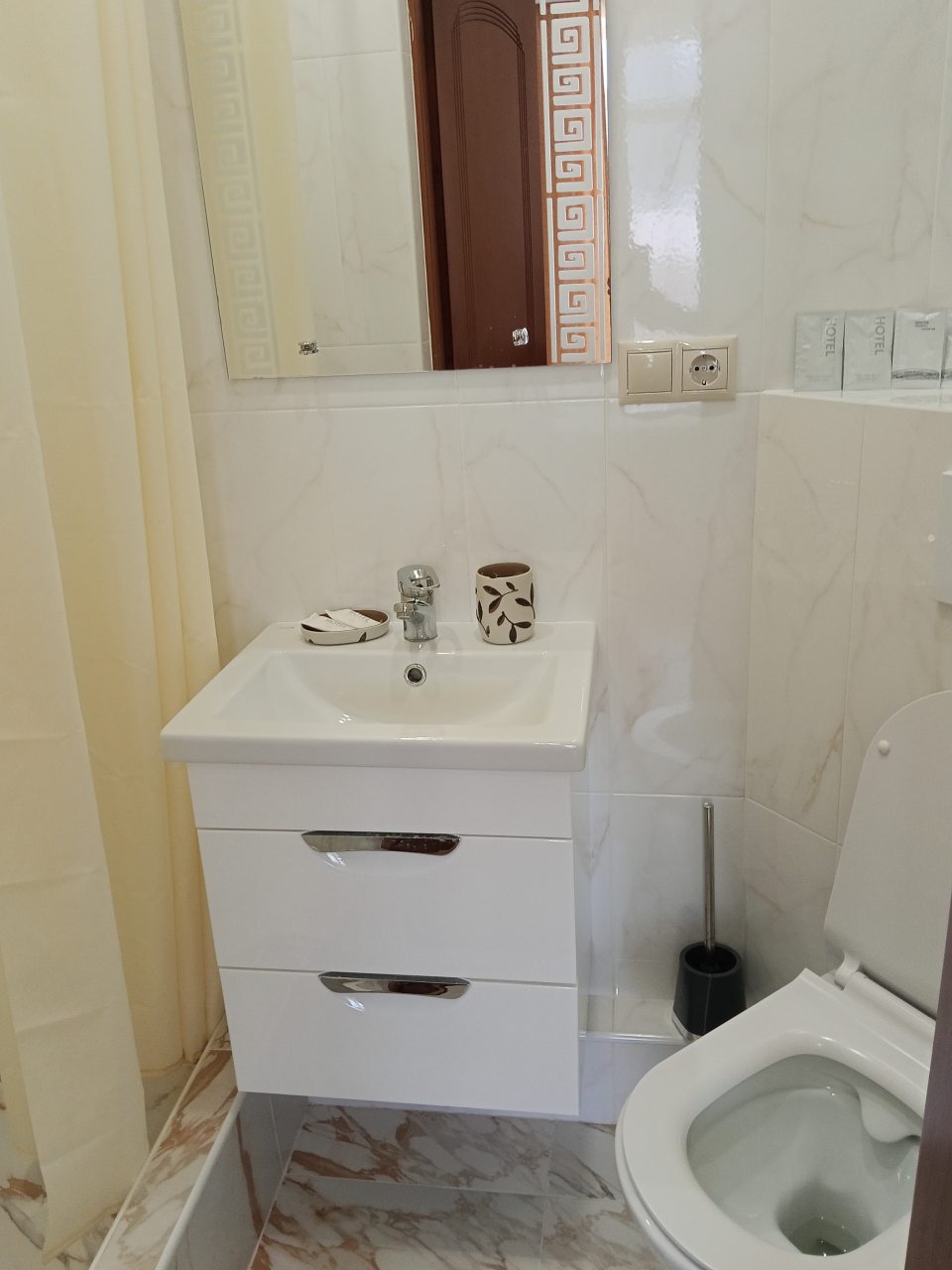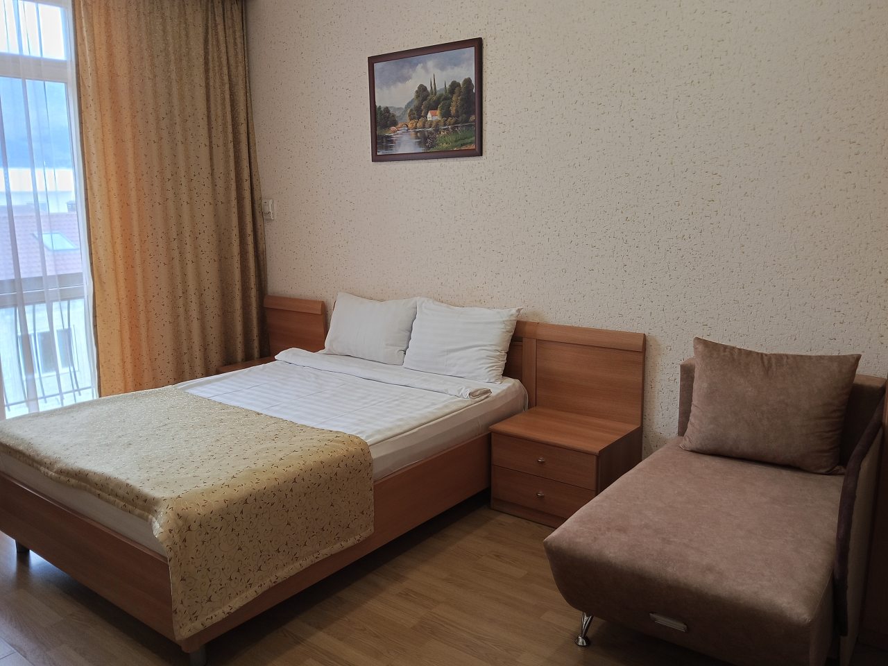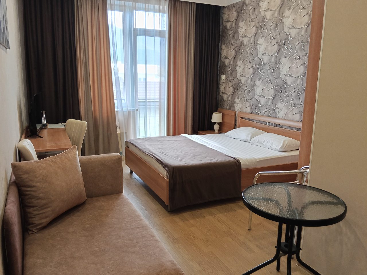 Здесь отличное все. Персонал приветливый и вежливый. Номер был просторный и очень уютный. Хорошо обставленный. На кровати постелен отличный матрас. Было чисто. Ходили по номеру в белых носках, остались чистыми, что вижу впервые. Стоимость более чем адекватная, учитывая расположение. Находится прямо у моря, почти на берегу. Звукоизоляция не идеальная, но это проблема многих гостиниц. Но нам по сути никто не мешал и мы не слышали шумов посторонних, спали спокойно. Рекомендую к проживанию.