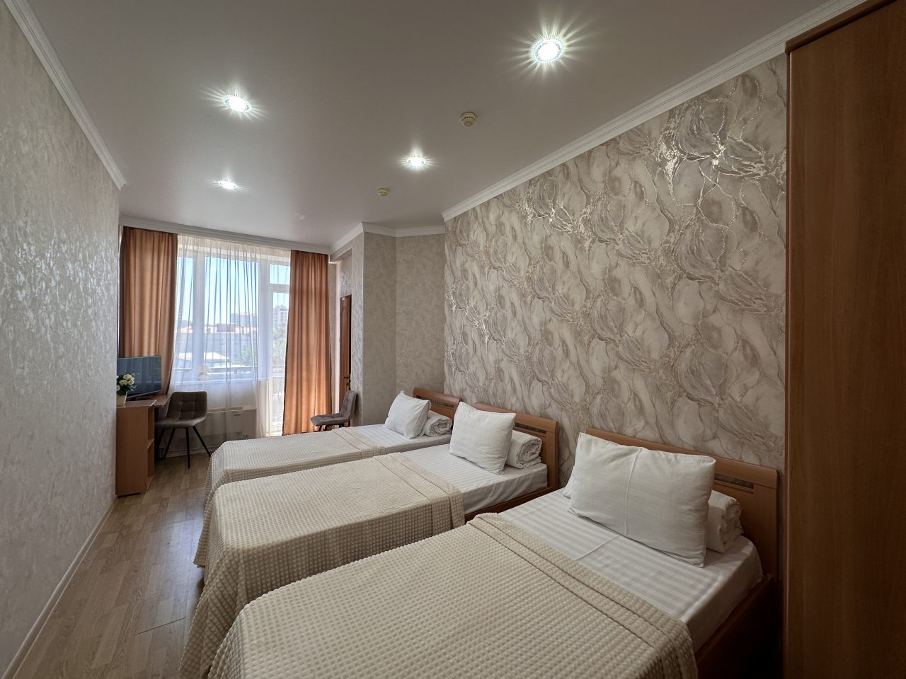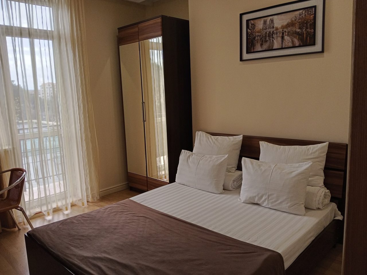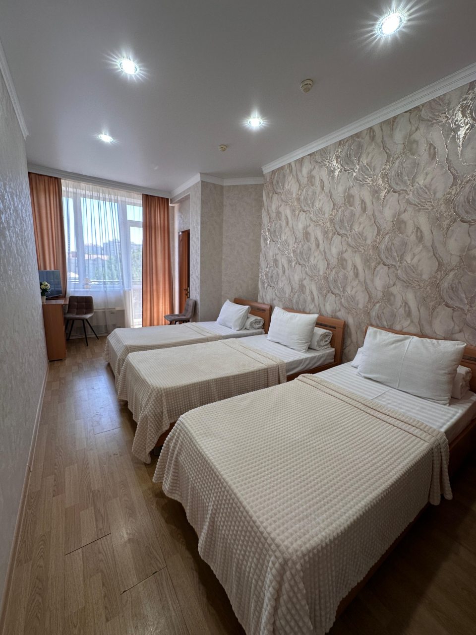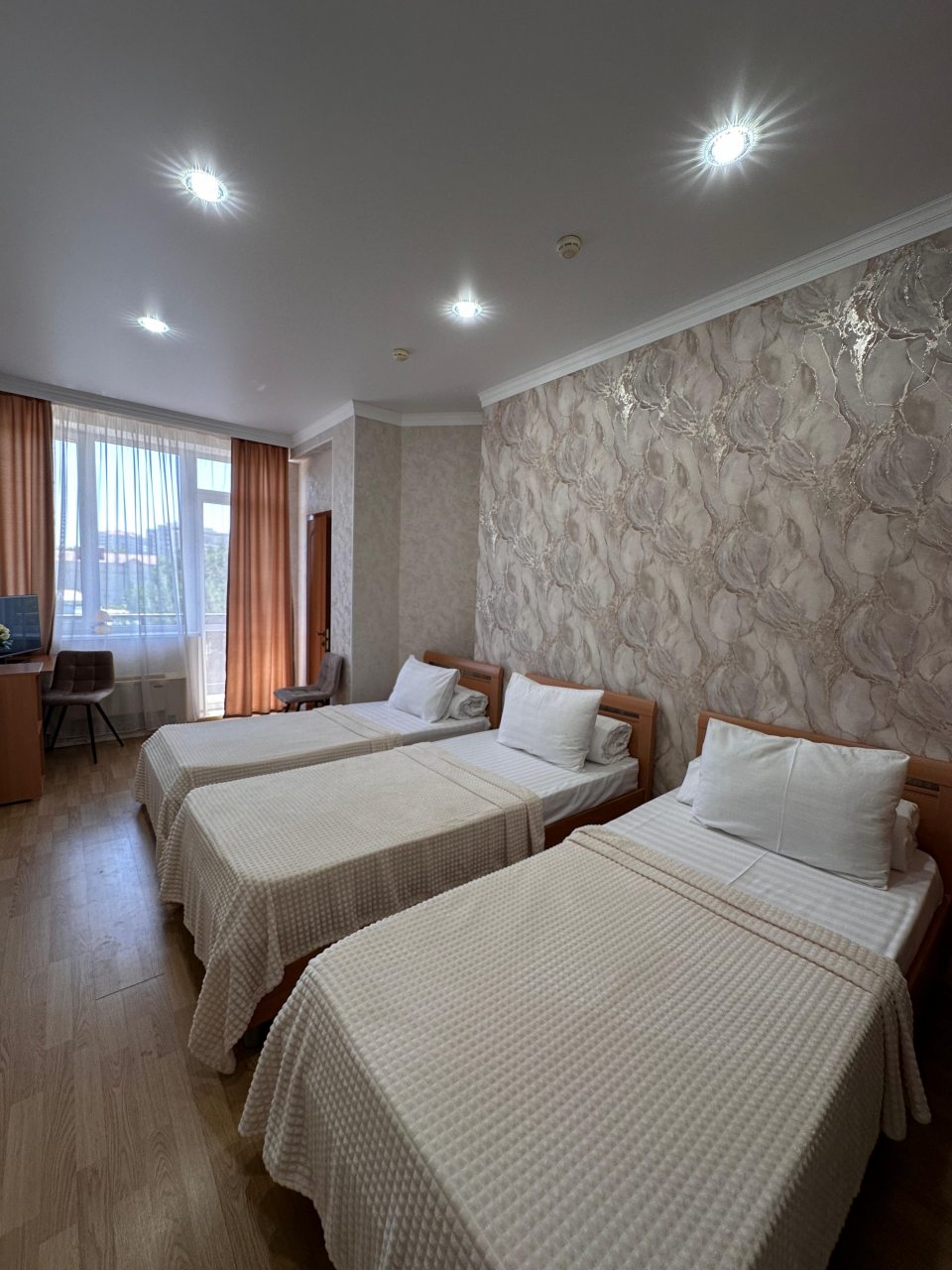 Здесь отличное все. Персонал приветливый и вежливый. Номер был просторный и очень уютный. Хорошо обставленный. На кровати постелен отличный матрас. Было чисто. Ходили по номеру в белых носках, остались чистыми, что вижу впервые. Стоимость более чем адекватная, учитывая расположение. Находится прямо у моря, почти на берегу. Звукоизоляция не идеальная, но это проблема многих гостиниц. Но нам по сути никто не мешал и мы не слышали шумов посторонних, спали спокойно. Рекомендую к проживанию.