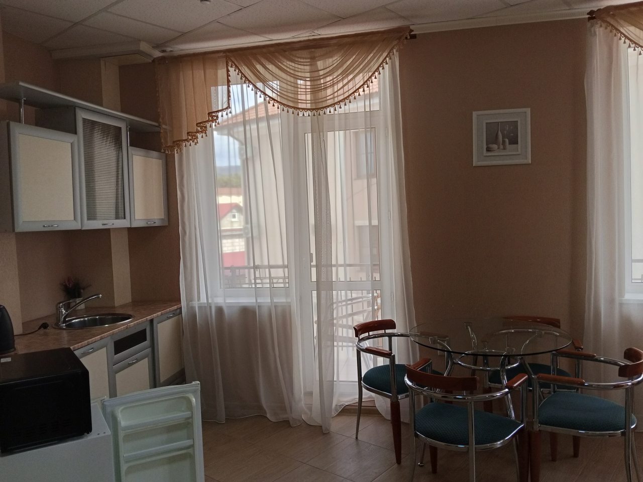 Нам понравилось, как оформлен внутренний двор — много зелени, декоративные элементы, всё ухожено. Ощущается уют в мелочах: мягкие пледы, ароматные травы у крыльца. Приветливые хозяева, подсказали, где лучше купаться и что посмотреть. Рядом продуктовый магазин и столовая с вкусными пирогами. Идеальное место, чтобы остановиться с подругами на выходные. Утром особенно приятно пить кофе на балконе.