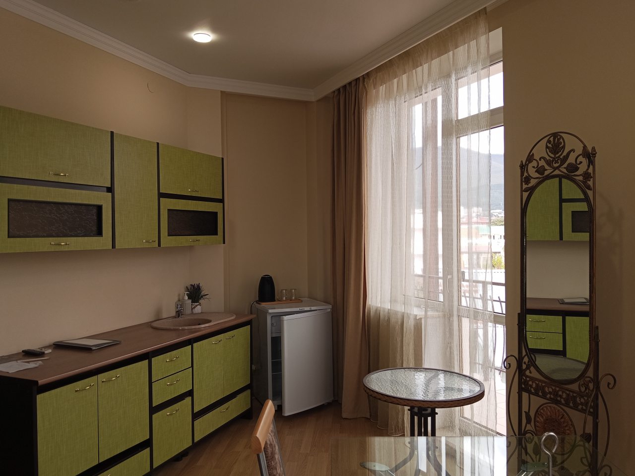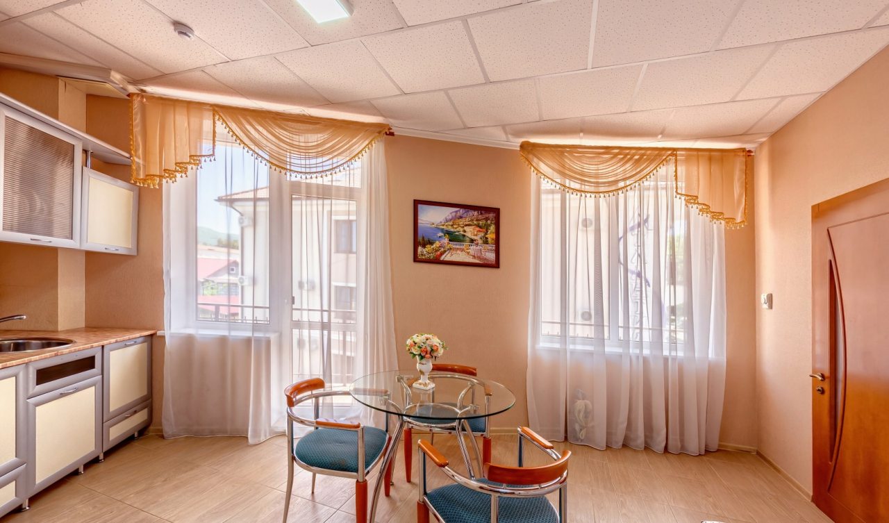 Отличный гостевой дом, помимо традиционных гостиничных предложений, есть салон красоты. Расположение понравилось. Несколько минут ходьбы и море. Номер небольшой, но все удобства имеются, одна расположилась очень комфортно. Завтраки приятно впечатлили.
