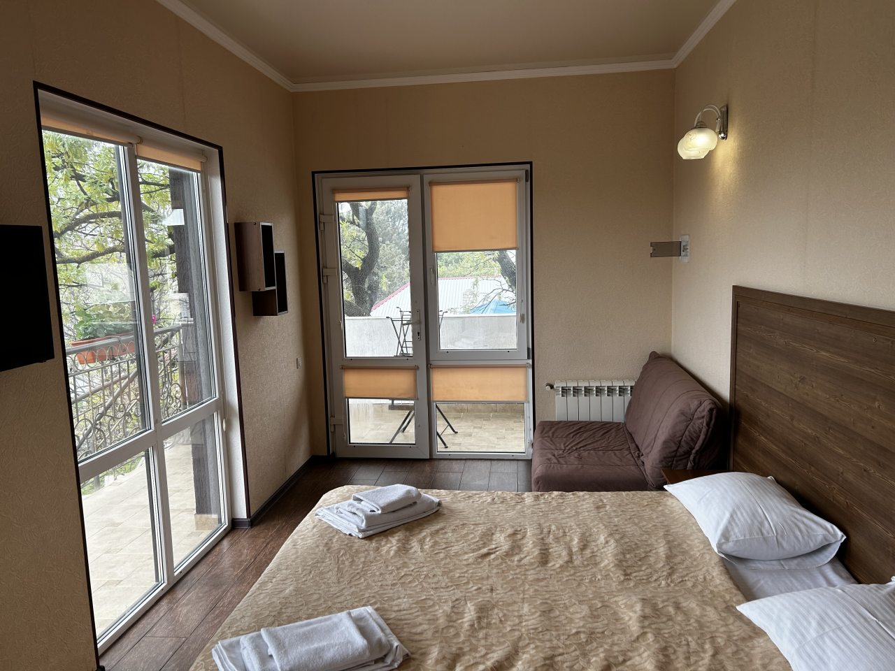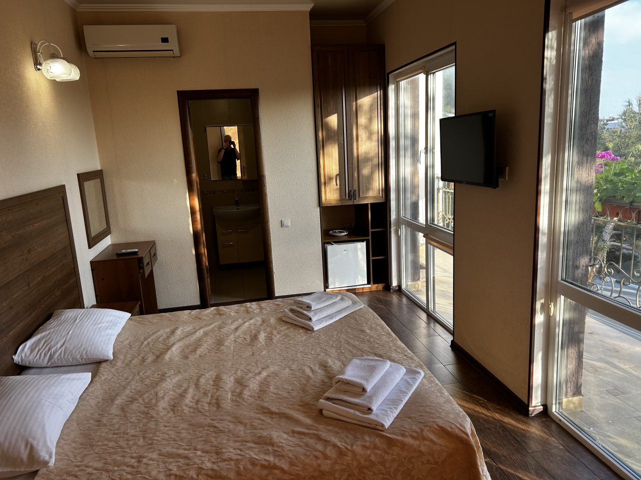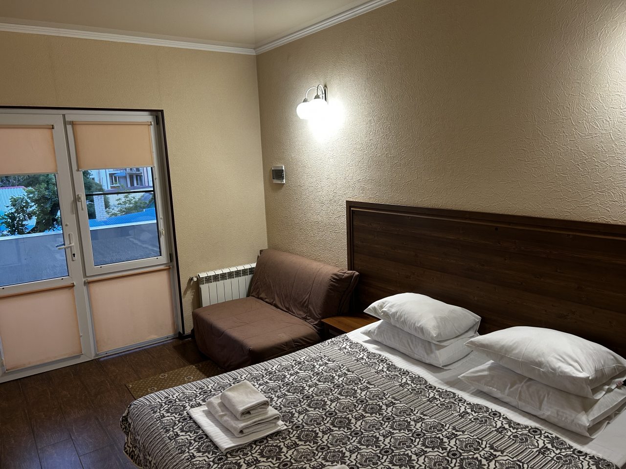 Наша пара выбрала этот дом как компромисс между ценой и удобством — и не пожалели. С первого взгляда видно, что всё организовано с умом: номера удобные, территория небольшая, но ухоженная. Порадовало наличие зон отдыха, особенно с теневыми навесами. До набережной можно дойти за 7–10 минут, что очень удобно. Вечером приятно прогуляться до центра и вернуться в тишину. Продавцы на ближайшем рынке уже узнают в лицо.