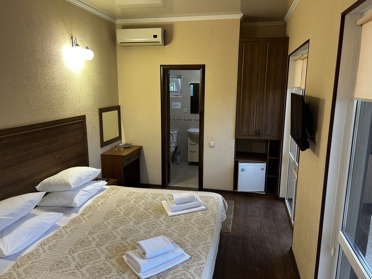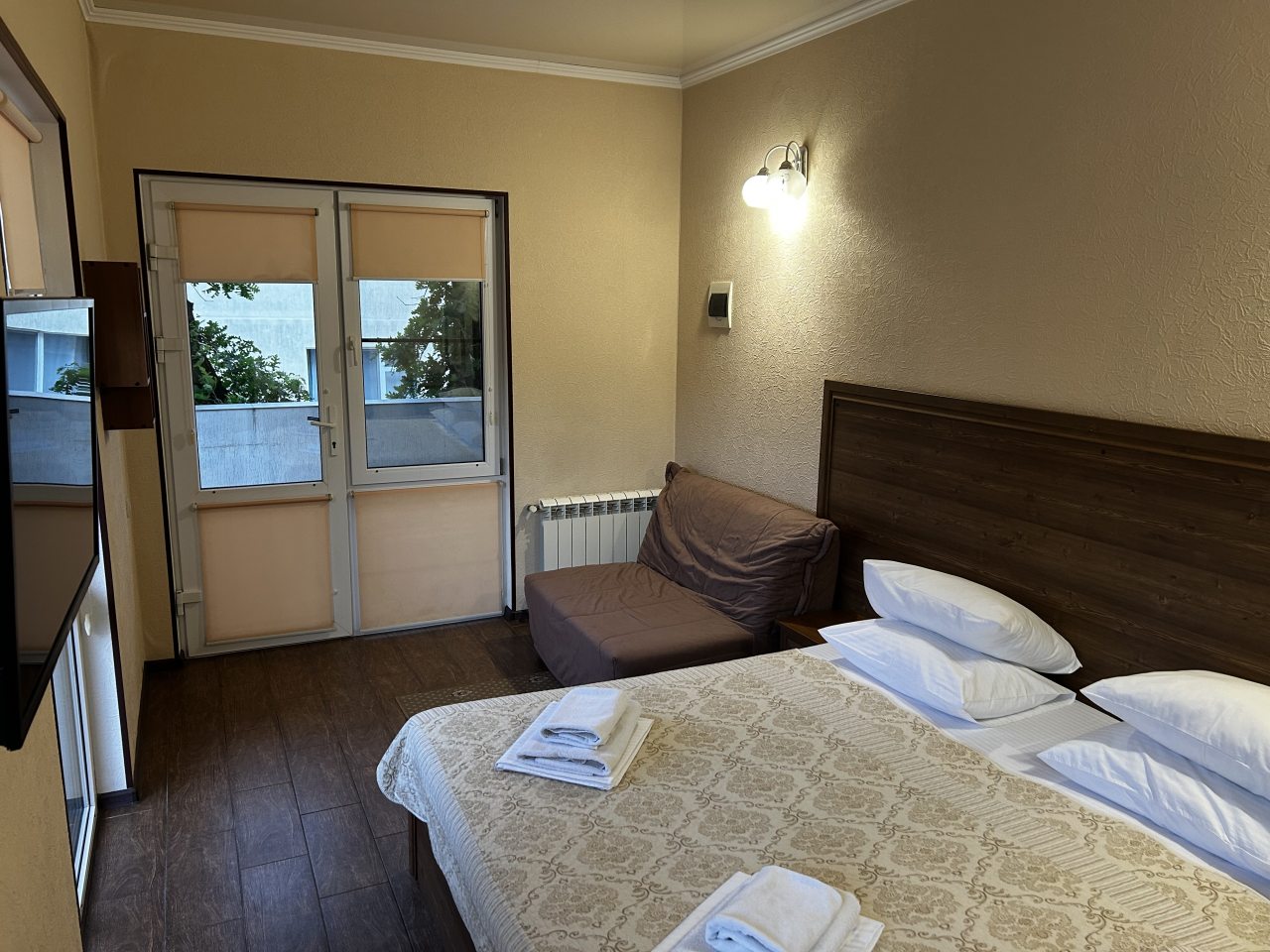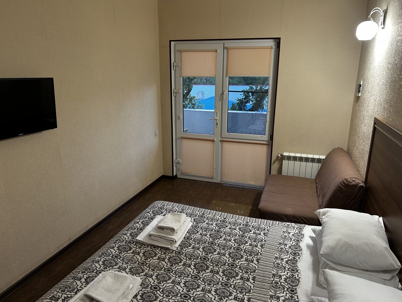 Наша пара выбрала этот дом как компромисс между ценой и удобством — и не пожалели. С первого взгляда видно, что всё организовано с умом: номера удобные, территория небольшая, но ухоженная. Порадовало наличие зон отдыха, особенно с теневыми навесами. До набережной можно дойти за 7–10 минут, что очень удобно. Вечером приятно прогуляться до центра и вернуться в тишину. Продавцы на ближайшем рынке уже узнают в лицо.