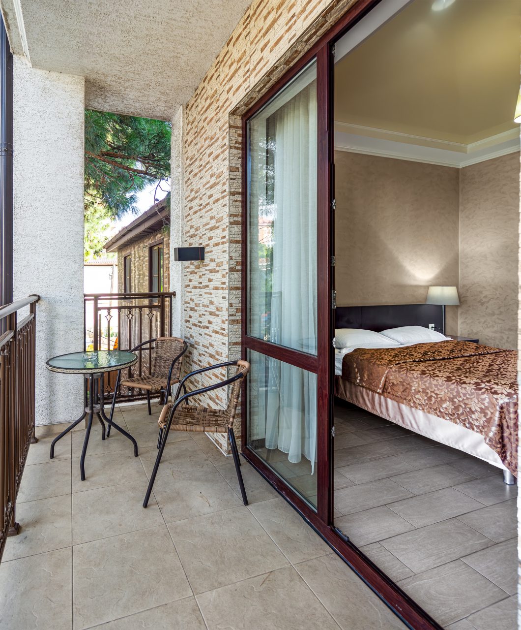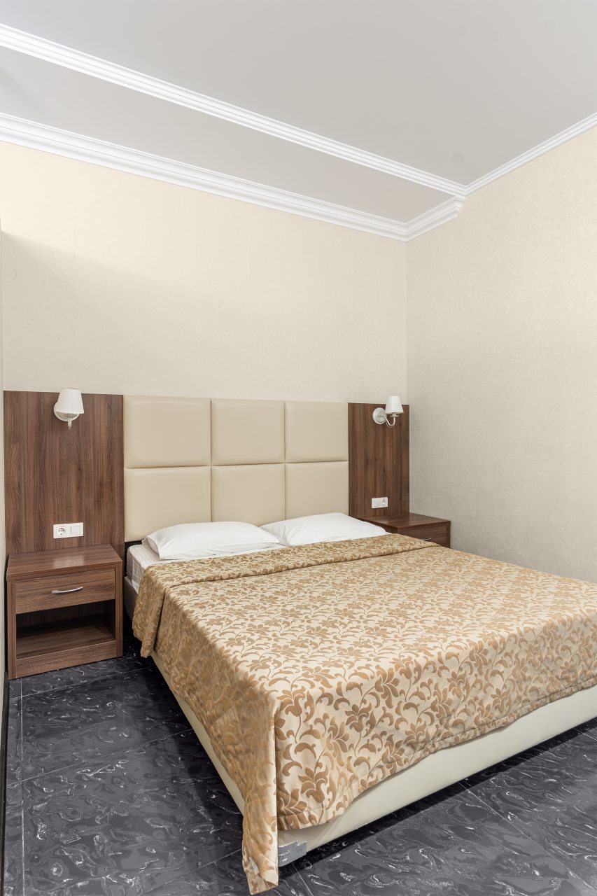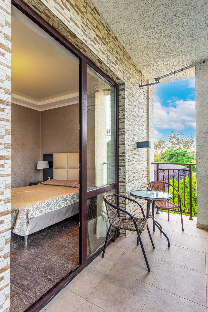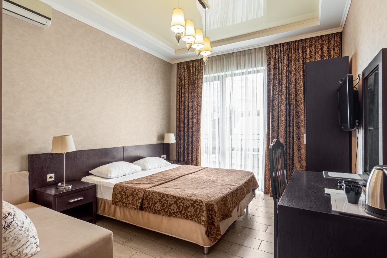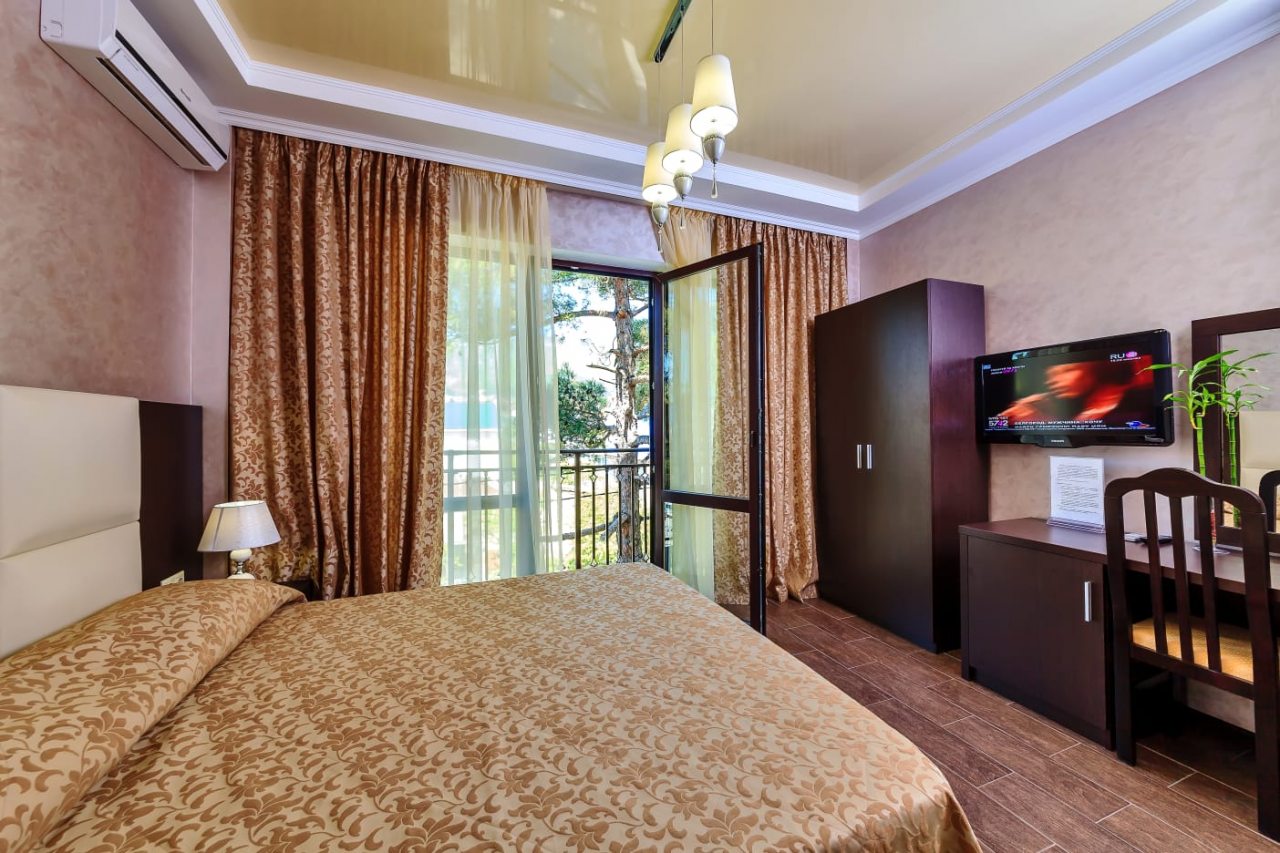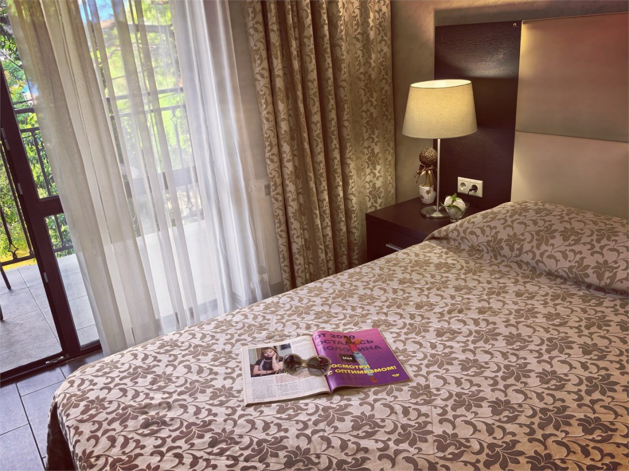 Выбрали эту гостинице по рекомендации наших друзей. Остались очень довольны. Выбрали апартаменты с кухней, чтобы можно было готовить самостоятельно. Сам номер был хорошо убран. Было уютно и хорошо. Все удобства были предусмотрены. Кровать была комфортной для сна. Расположение очень даже хорошее, до моря недалеко. В общем остались только положительные эмоции и впечатления.