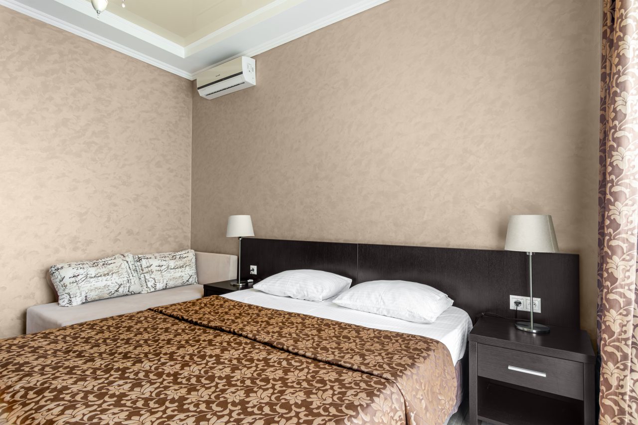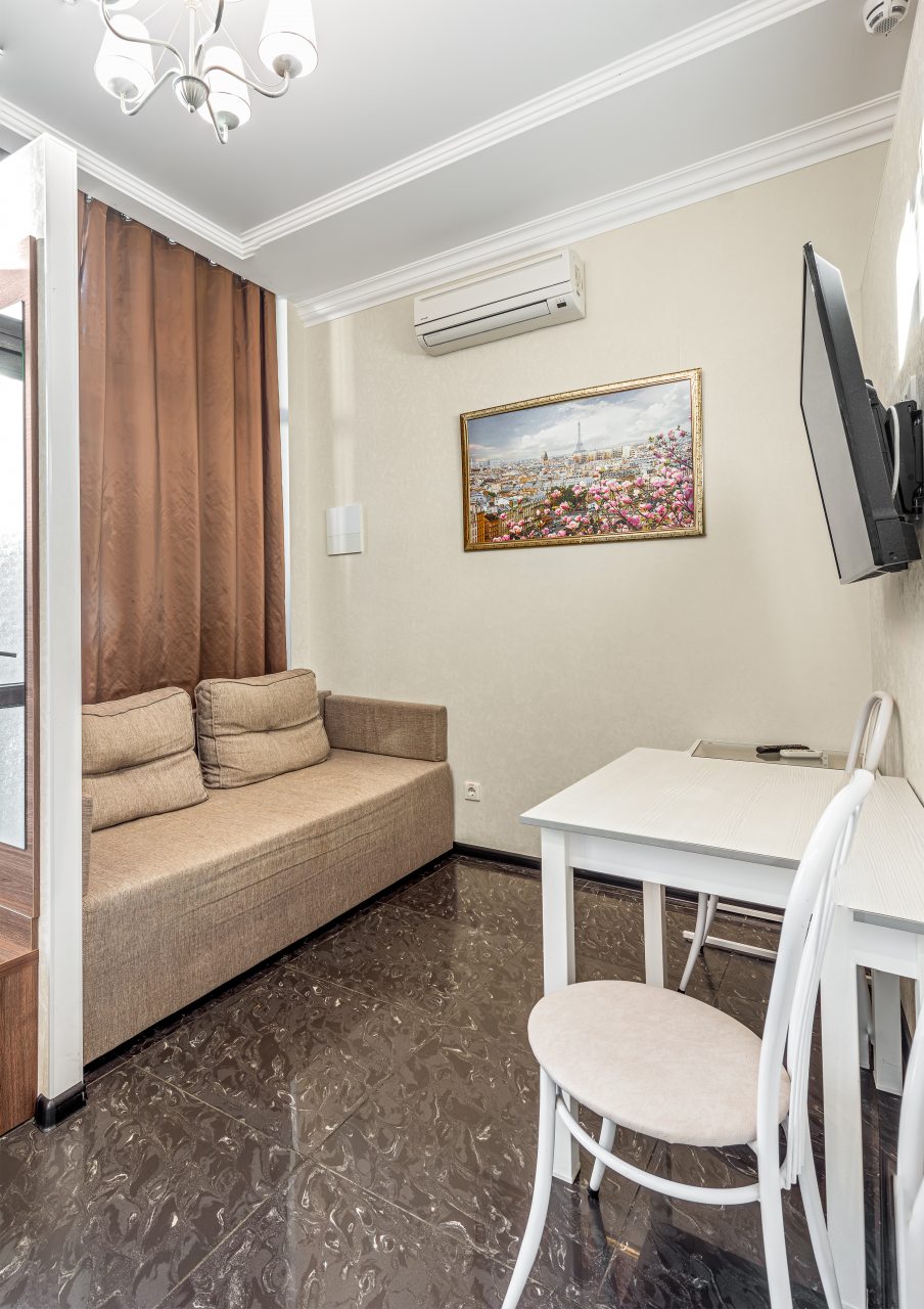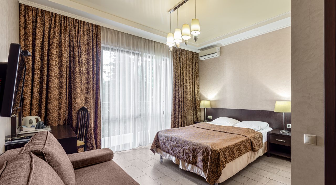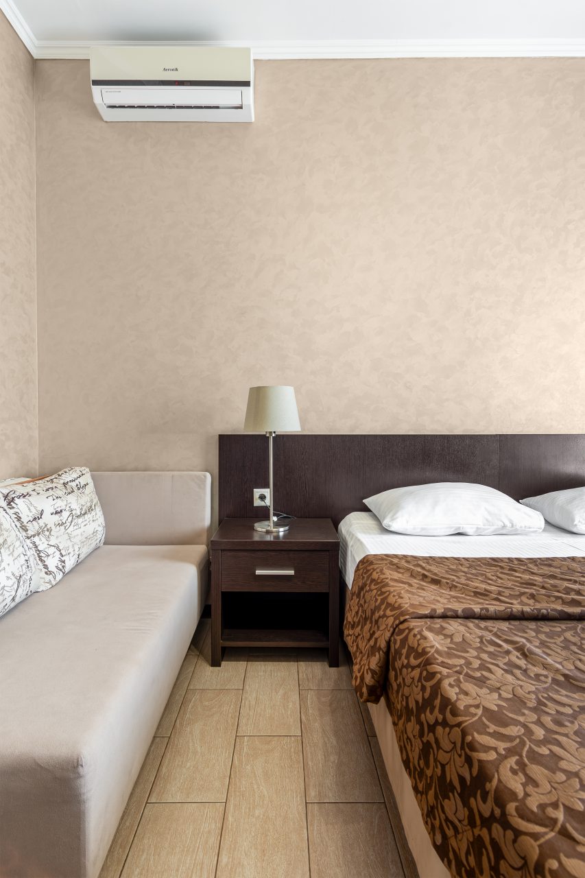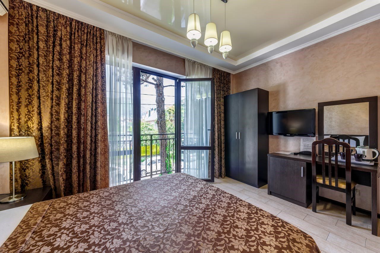 Выбрали эту гостинице по рекомендации наших друзей. Остались очень довольны. Выбрали апартаменты с кухней, чтобы можно было готовить самостоятельно. Сам номер был хорошо убран. Было уютно и хорошо. Все удобства были предусмотрены. Кровать была комфортной для сна. Расположение очень даже хорошее, до моря недалеко. В общем остались только положительные эмоции и впечатления.