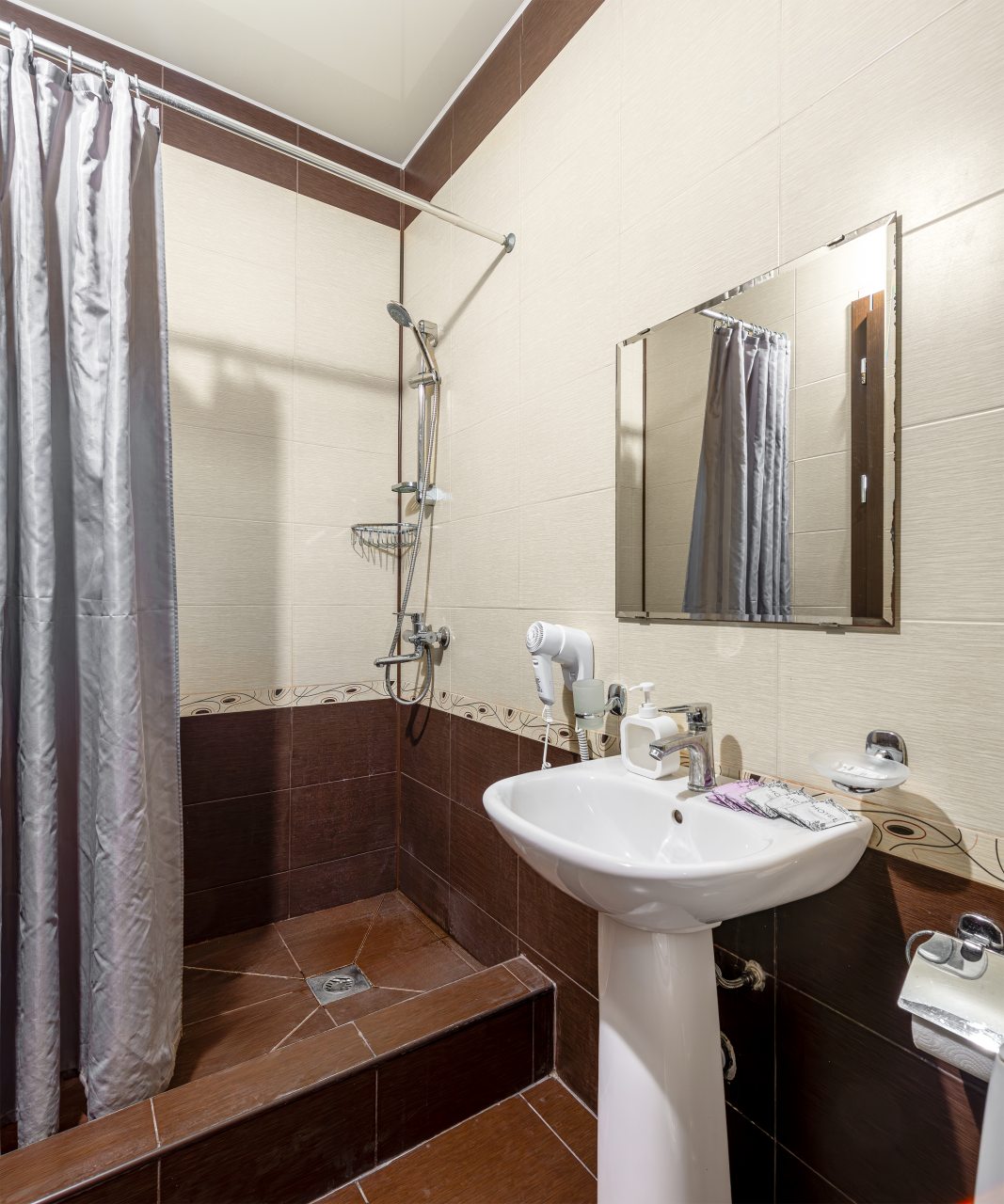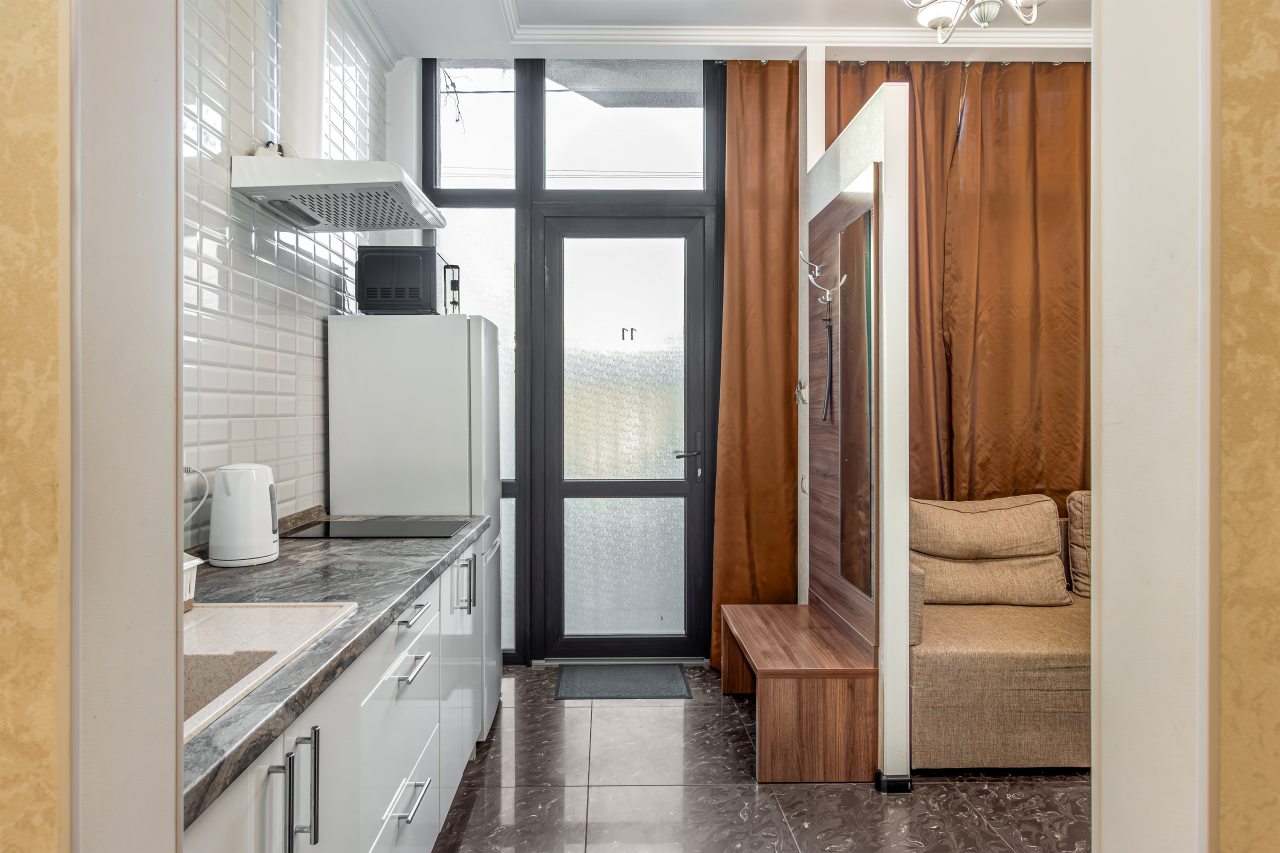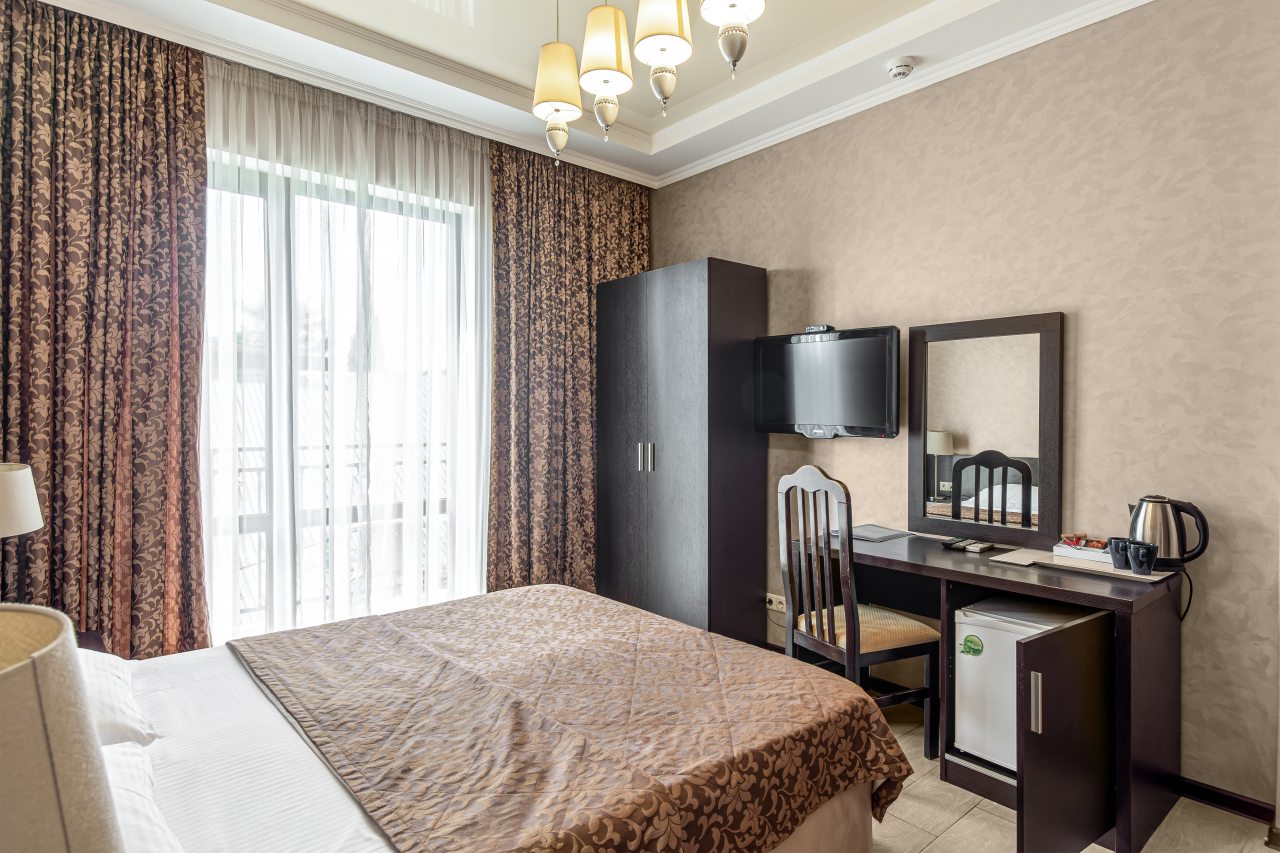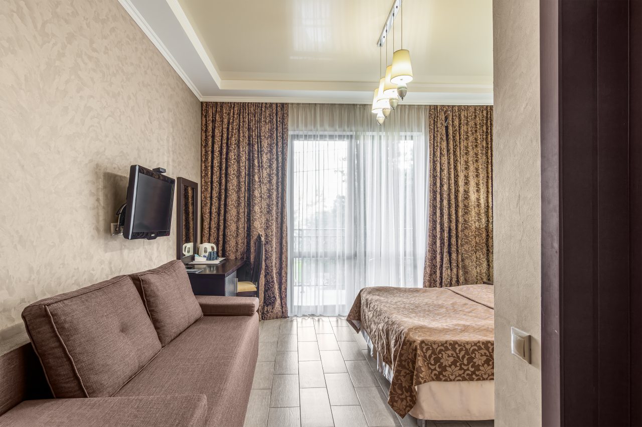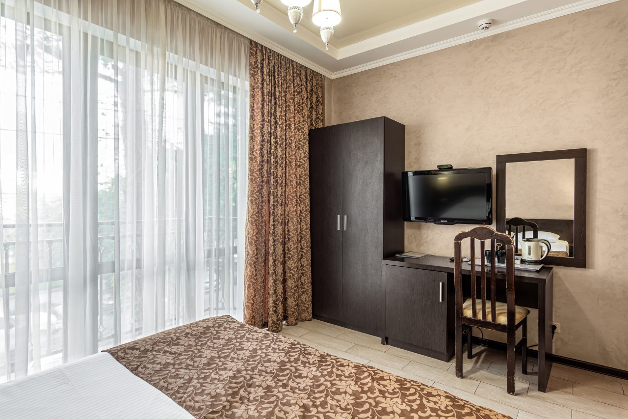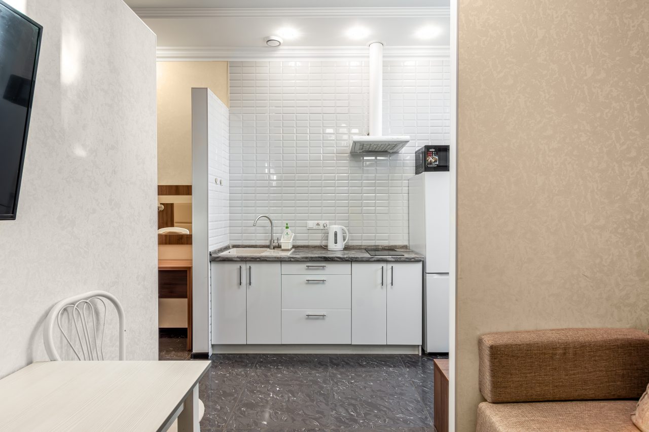 Выбрали эту гостинице по рекомендации наших друзей. Остались очень довольны. Выбрали апартаменты с кухней, чтобы можно было готовить самостоятельно. Сам номер был хорошо убран. Было уютно и хорошо. Все удобства были предусмотрены. Кровать была комфортной для сна. Расположение очень даже хорошее, до моря недалеко. В общем остались только положительные эмоции и впечатления.