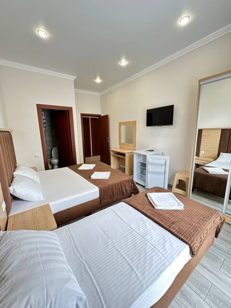 Достаточно неплохой гостевой дом с хорошими номерами. Номер у нас двухместный стандартный был. В принципе чистый, приятно, что постельное белье как в отелях чисто белого цвета, а не цветастые, как часто бывает. И расположение очень выигрышное: и море близко и центр.
