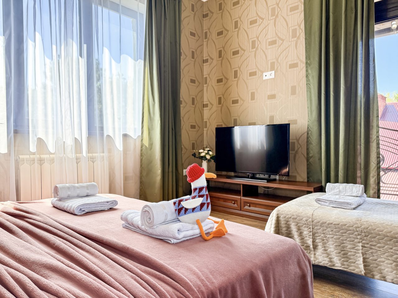 Из недостатков: теперь что мне не понравилось: Территории у гостевого дома на Кирова нет совсем, заселение ровно в 14.00 и не минутой раньше, ждать нужно за воротами. А если ты с дороги уставший, нет даже скамейки где присесть. Кондиционер работает плоховато, мы отдыхали с 18 - 21.06.25г жары не было, жили с открытыми окнами. По этому дискомфорт не почувствовали от плохо работающего кондиционера.