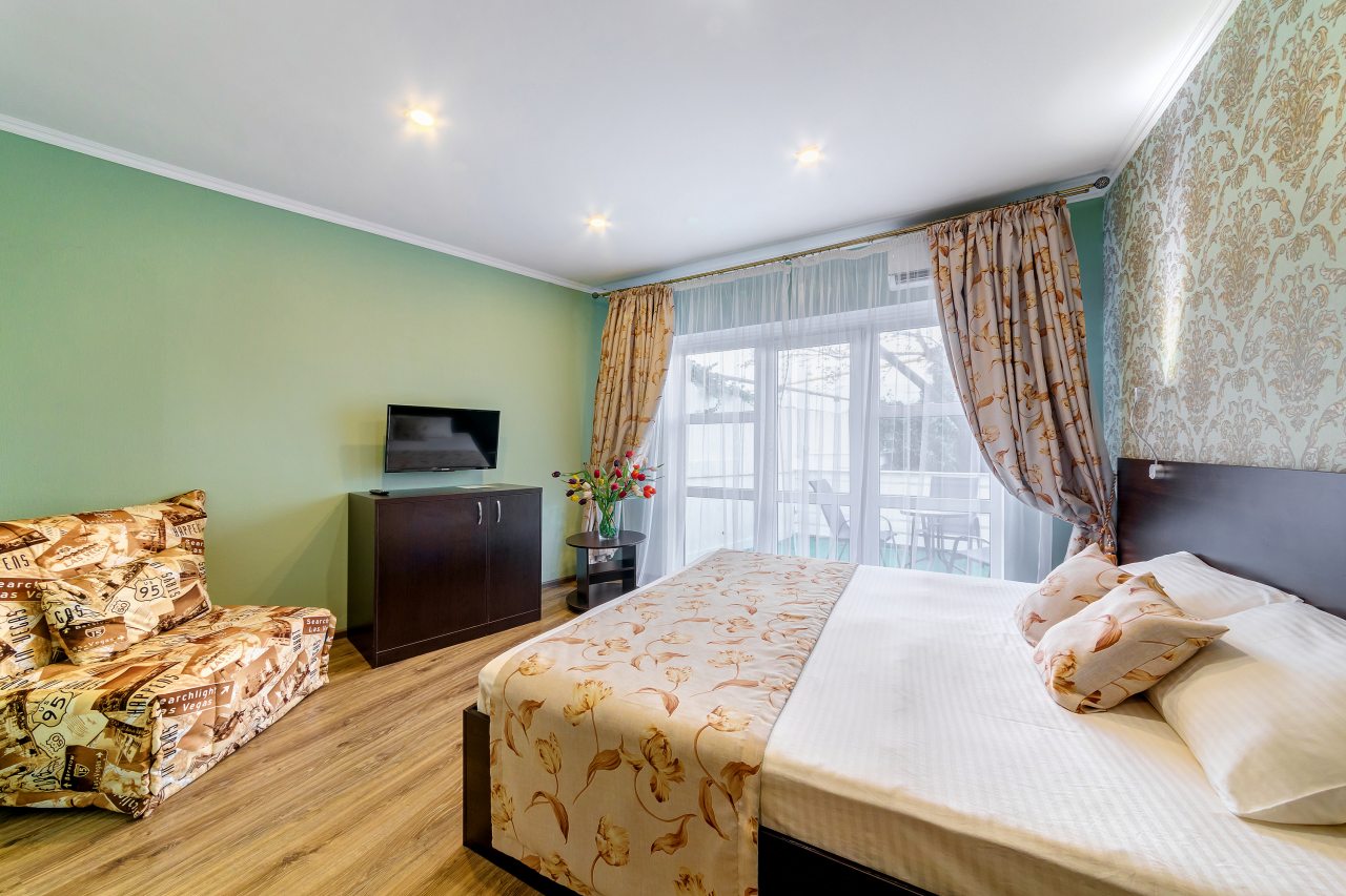 Отдыхали в июле 2025 г семьёй, снимали два двухместных номера на первом этаже. В номере есть всё необходимое, всё хорошо. Приветливый и отзывчивый персонал .До моря 10 минут пешком. Завтраки были в кафе " Ветерок " там же можно пообедать, комплексный обед, очень приличный всего за 600 рублей.