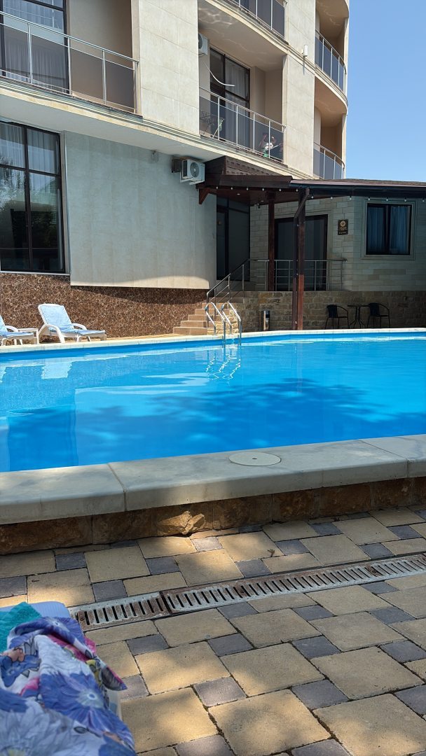 Просторный номер, свежий ремонт. Предоставляются тапочки и махровые халаты. В ванной гели для душа, шампуни, шапочки для душа, зубные щетки с пастой и мыло. Так же в номере есть чайник, с чашками, пакетики чая и растворимый кофе. На балконе столик и стулья, что очень удобно. Очень понравился бассейн с подогреваемой водой. Рядом с ним достаточное количество лежаков с матрасами. Время пользования бассейном с 8-00 до 22-00. Так же понравился завтрак. Очень сытно и вкусно. От отдыха получили только приятные эмоции. Рекомендую отель.