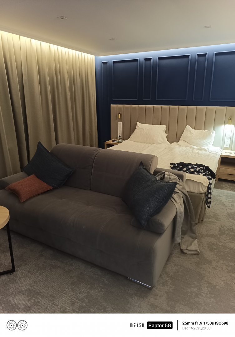 Шикарный номер с современным дизайном, панорамные окна и просторная лоджия. Ухоженная территория, приветливый, вежливый персонал. Большая, озелененная территория для прогулок, по территории можно передвигаться на электрокаре, водитель очень доброжелательный, вежливый. Подогреваемый бассейн, теплые раздевалки, сауна. Море в шаговой доступности .Обязательно ещё сюда вернёмся.
