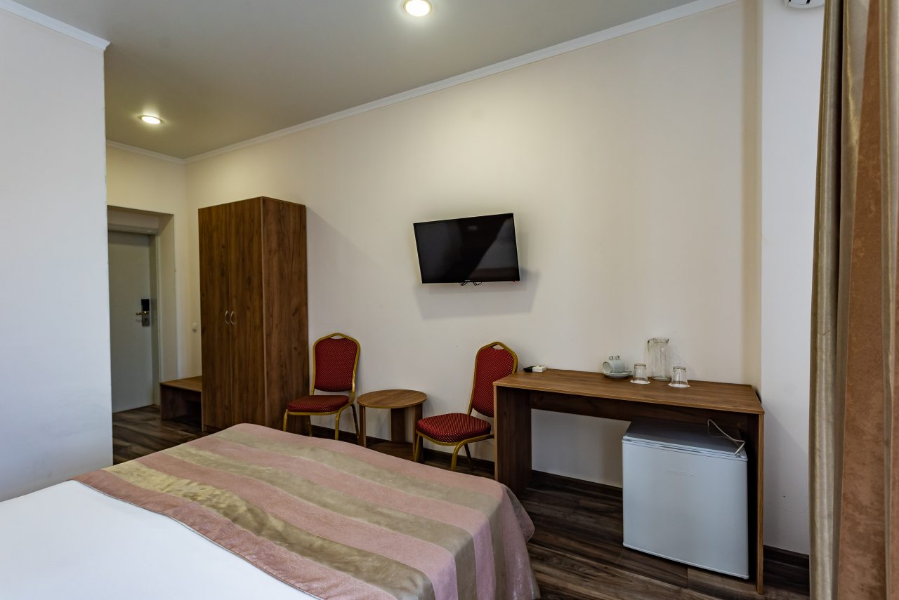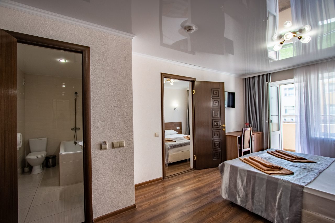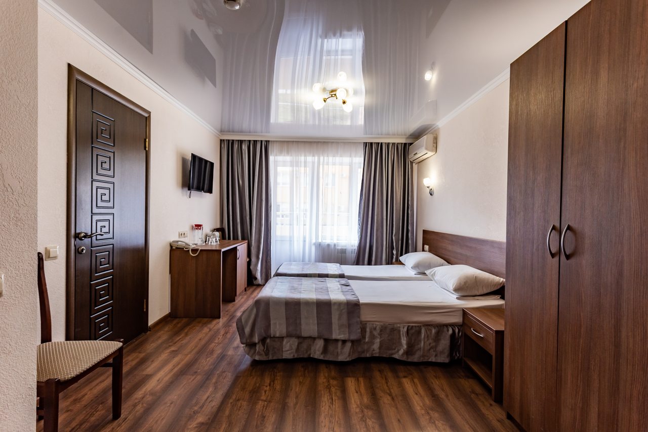 Для трёхзвёздочного отеля очень достойные условия для проживания. Бронировали заранее номер категории «Комфорт», все отлично, просторный, чистый номер. При отеле есть столовая, питание нам понравилось, разнообразное, вкусные закуски, салатики. Пляж собственный, хоть и галечный, но все равно это не испортило общего впечатления от отдыха.