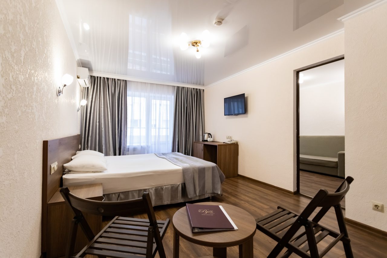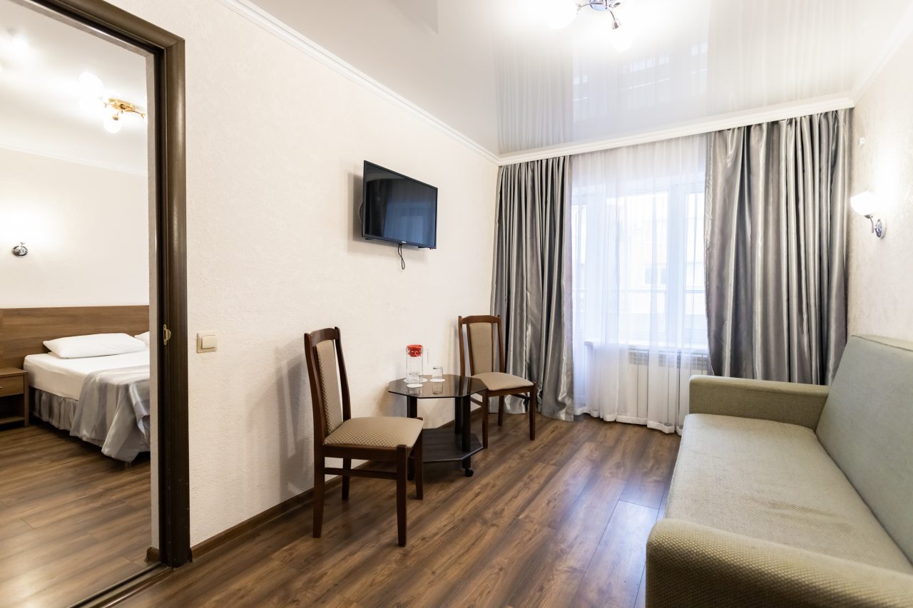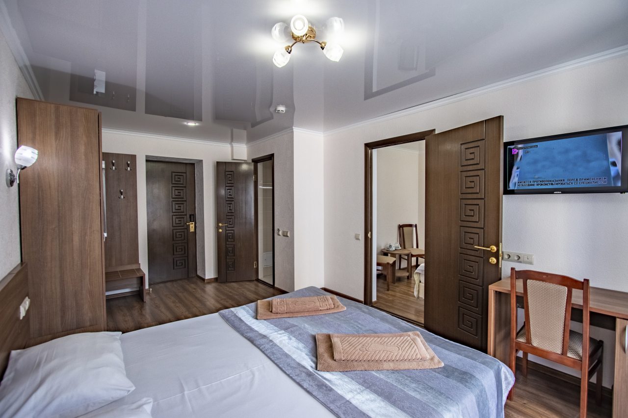 Для трёхзвёздочного отеля очень достойные условия для проживания. Бронировали заранее номер категории «Комфорт», все отлично, просторный, чистый номер. При отеле есть столовая, питание нам понравилось, разнообразное, вкусные закуски, салатики. Пляж собственный, хоть и галечный, но все равно это не испортило общего впечатления от отдыха.