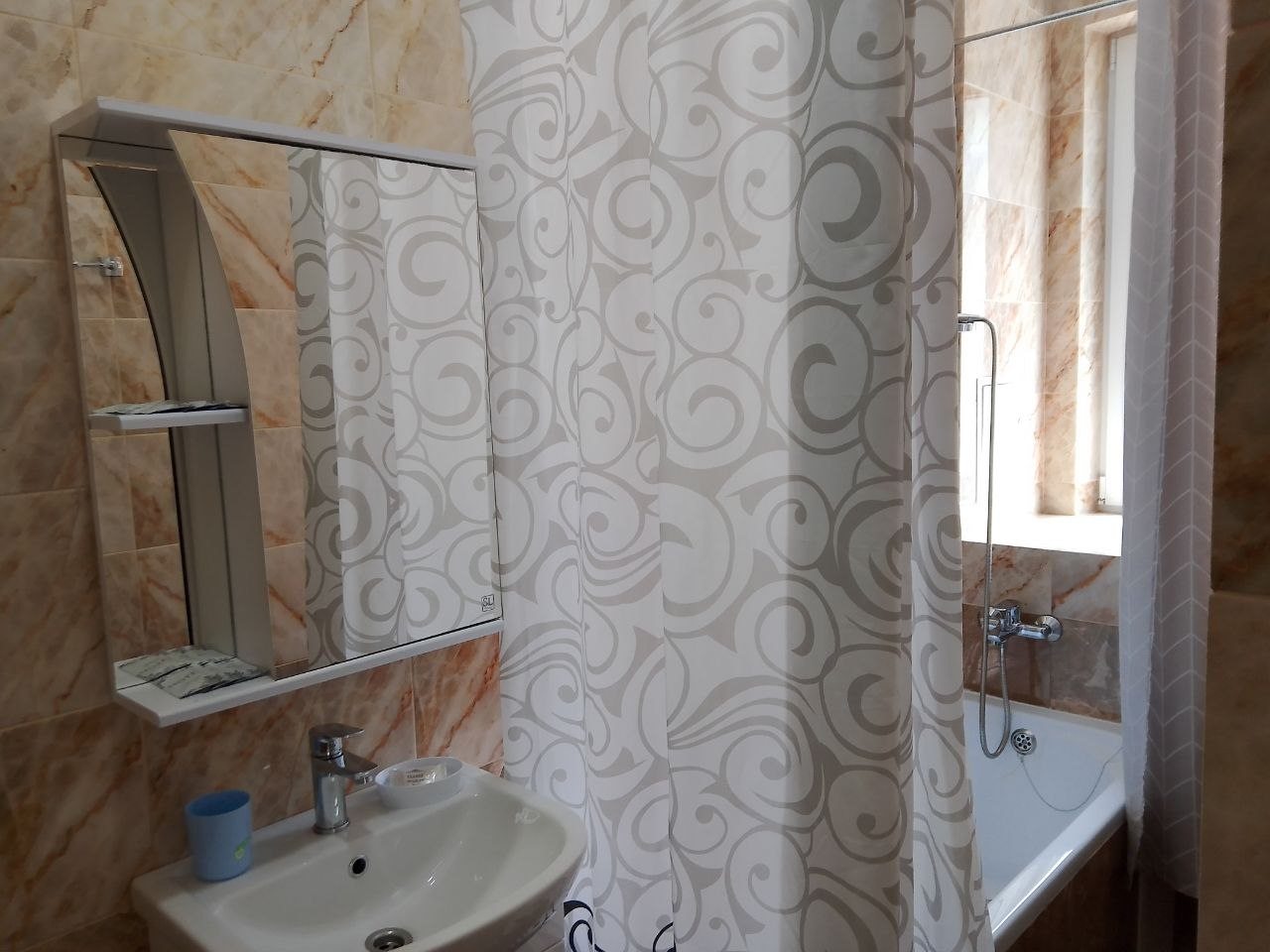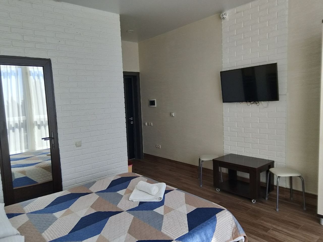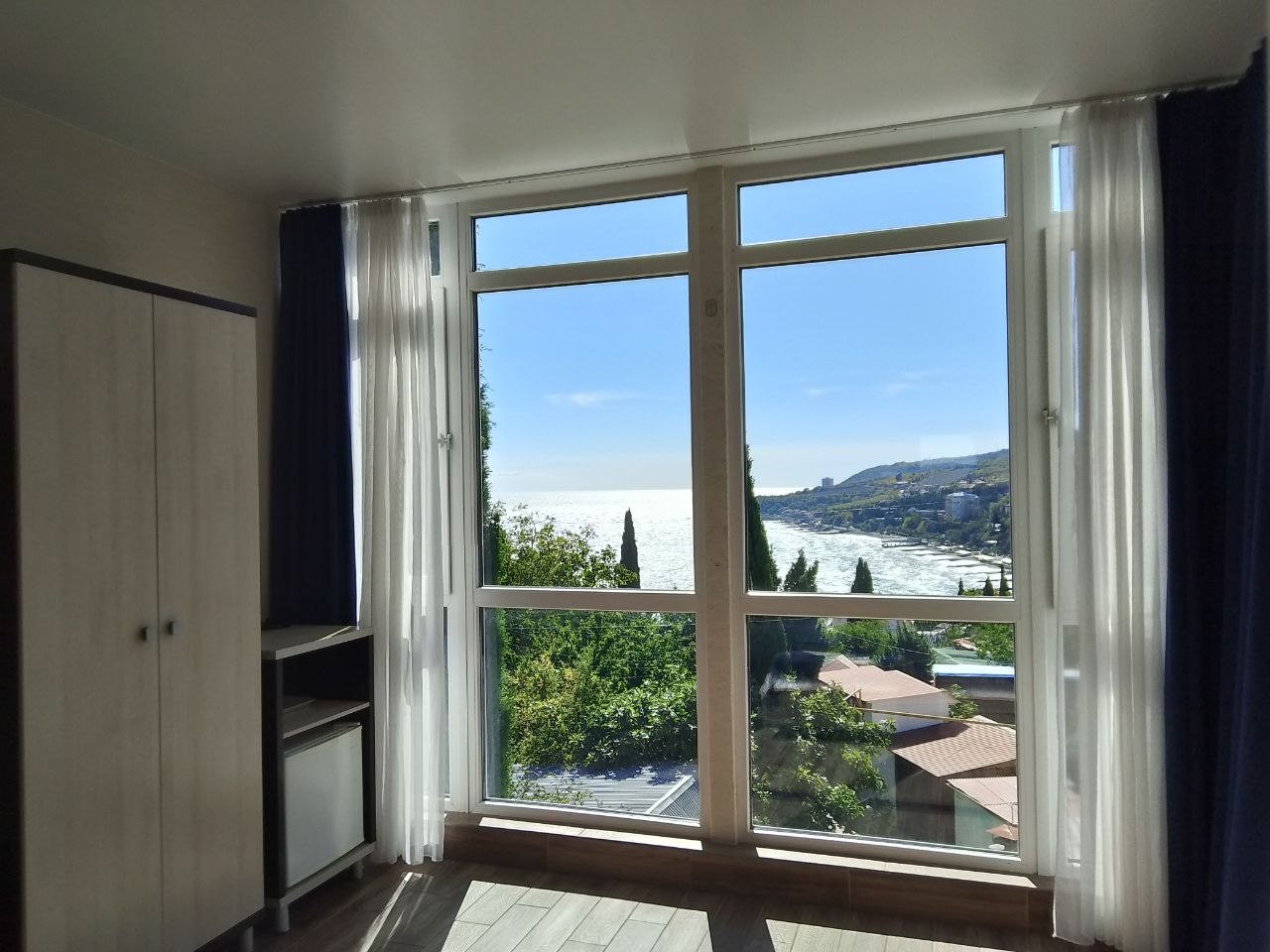 Останавливались на 1м этаже в комнатах с кухней и собственным двориком. Много места, достаточно новой мебели для хранения вещей. Постельное белье и полотенца белоснежные. Вся сантехника и бытовая техника исправно работают. На кухне есть всё необходимое, но микроволновка общая на ресепшене. В гостевом доме есть оборудованная крыша с шезлонгами и цветами , с нее интересно рассматривать город и море. Администратор Елена всегда на связи и всегда помогала со всеми вопросами, за что ей большое человеческое спасибо. Пляж под горку примерно 10-15 мин не спеша. В шаговой доступности продуктовый магазин, кофейня, кафе "Балабан Янтык". Определенно рекомендую.