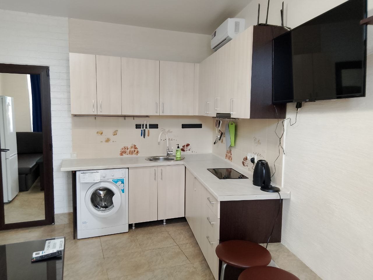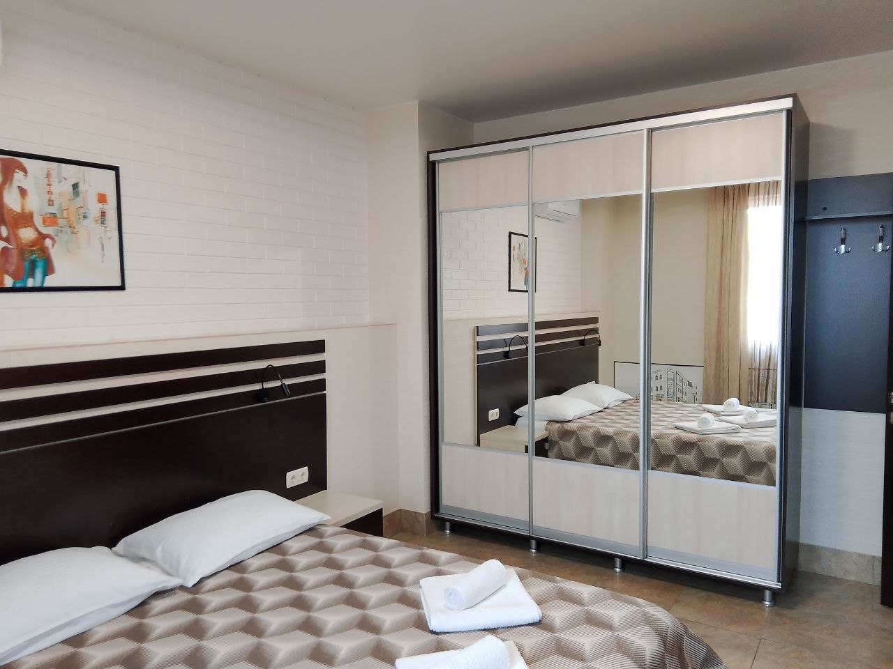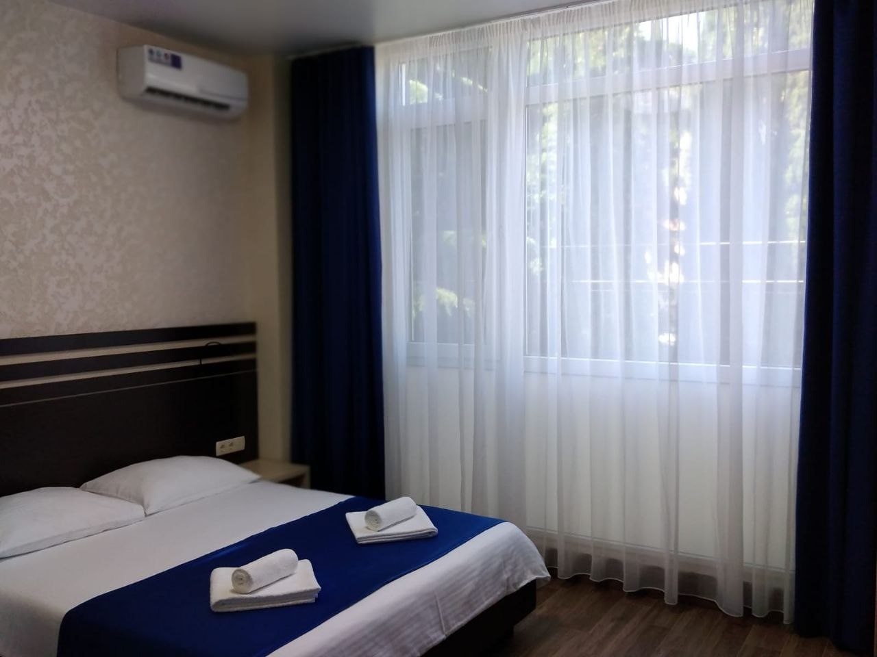 Останавливались на 1м этаже в комнатах с кухней и собственным двориком. Много места, достаточно новой мебели для хранения вещей. Постельное белье и полотенца белоснежные. Вся сантехника и бытовая техника исправно работают. На кухне есть всё необходимое, но микроволновка общая на ресепшене. В гостевом доме есть оборудованная крыша с шезлонгами и цветами , с нее интересно рассматривать город и море. Администратор Елена всегда на связи и всегда помогала со всеми вопросами, за что ей большое человеческое спасибо. Пляж под горку примерно 10-15 мин не спеша. В шаговой доступности продуктовый магазин, кофейня, кафе "Балабан Янтык". Определенно рекомендую.