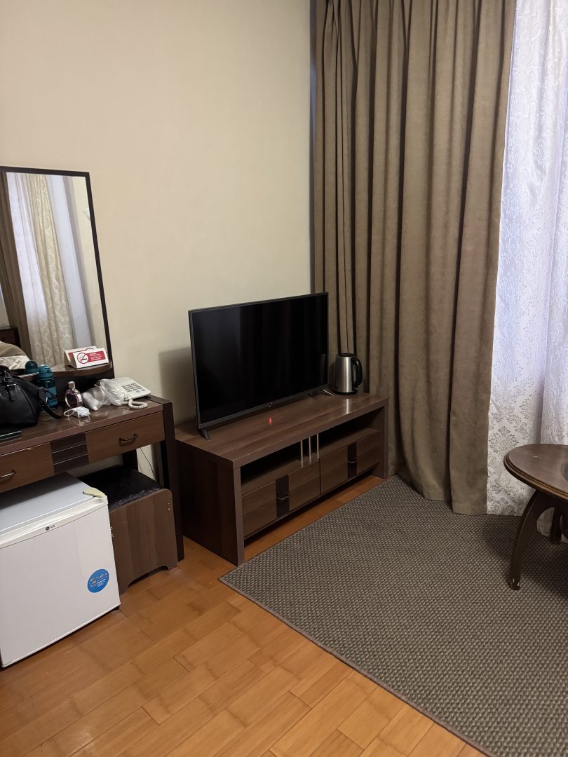 Несмотря на то, что батареи были горячими, в номере было немного прохладно. И второй момент, для приготовления чая в номере не было чашек. Только стаканы. Это немного неудобно. Но это уже пожелания
