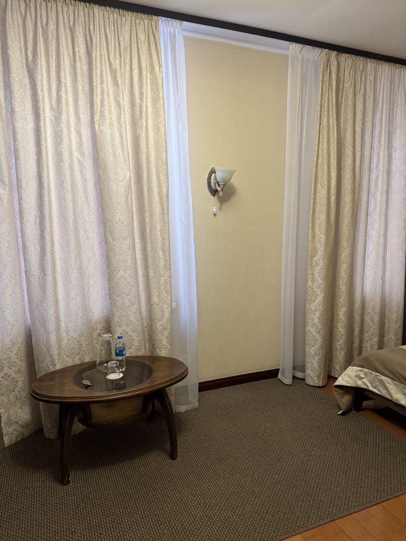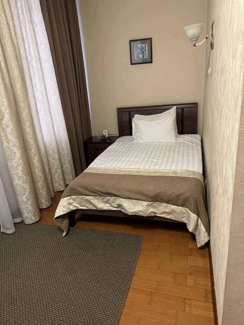 Из недостатков: кровать , матрас очень неудобный. Жесткий и пружины просто впивались при поворотах в тело. Общее впечатление было испорчено из за матраса , плохого сна.