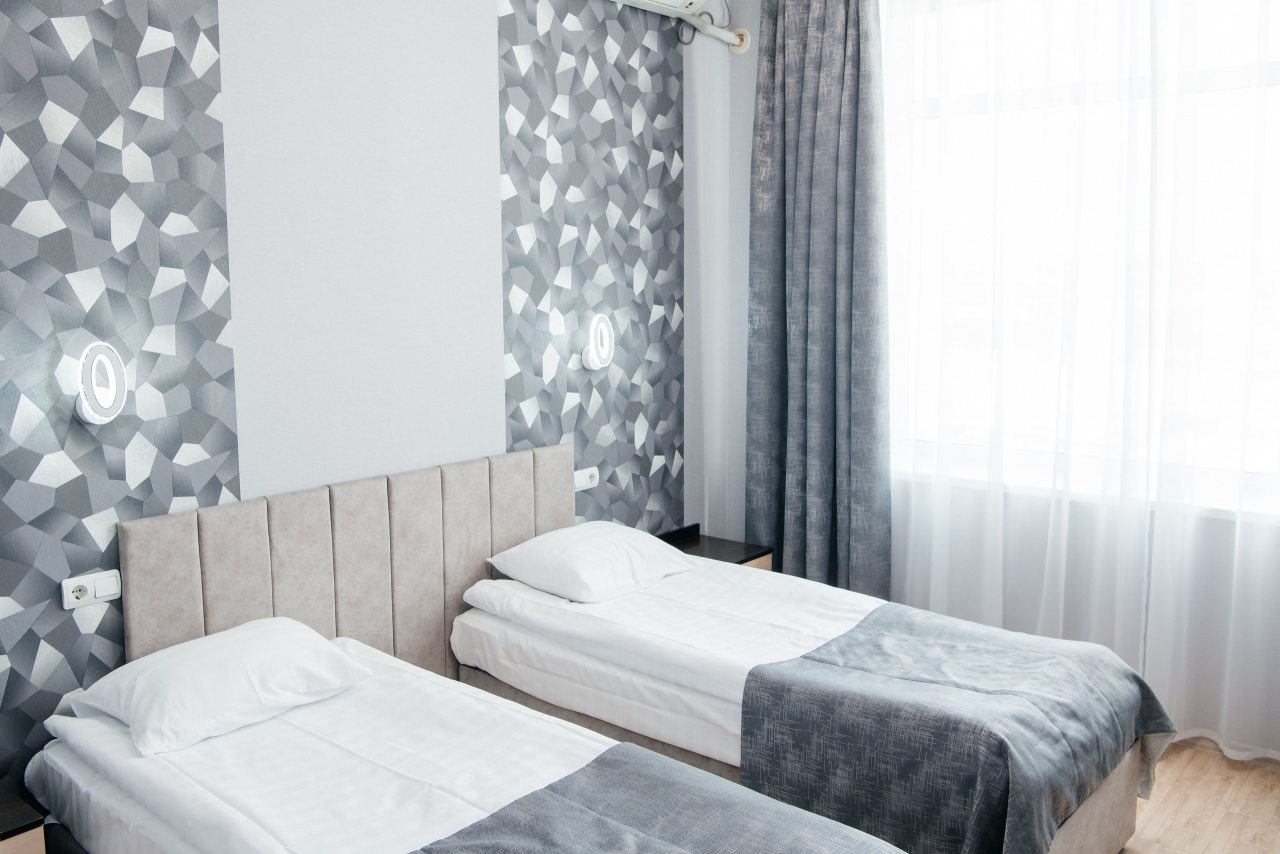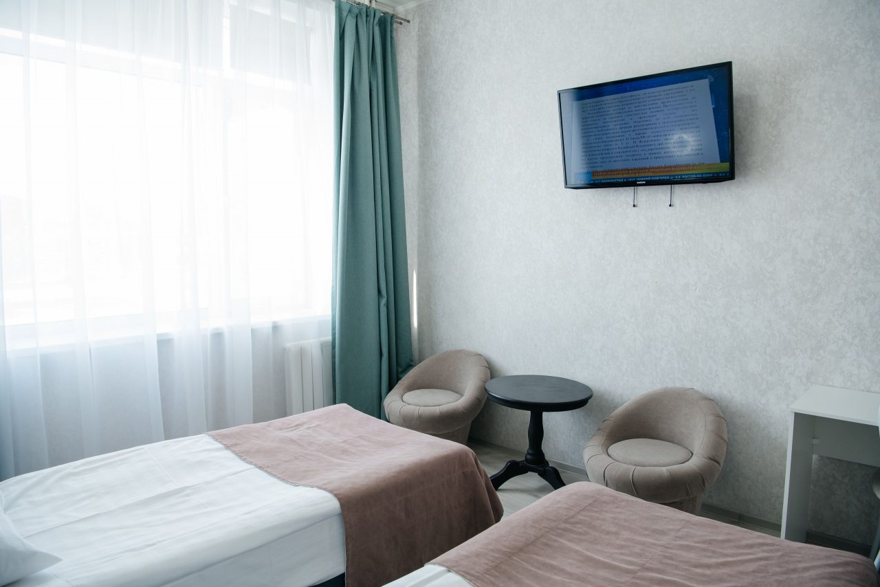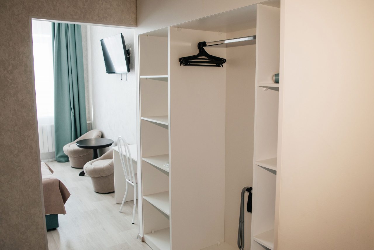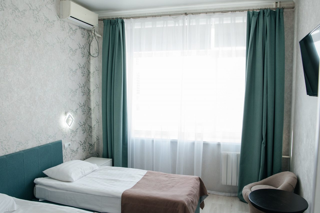 Вежливый, приветливый персонал во всем отеле. Номер брали двухкомнатный с двуспальными кроватями. Уютный, чистый, без посторонних запахов. В номере фен, кондиционер, холодильник имеется. В отеле есть лифт Расположение удобное в 10 минутах от аэропорта.