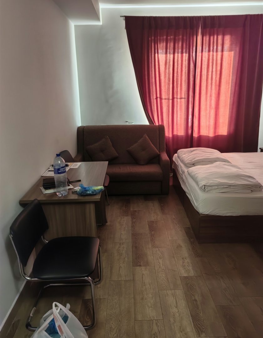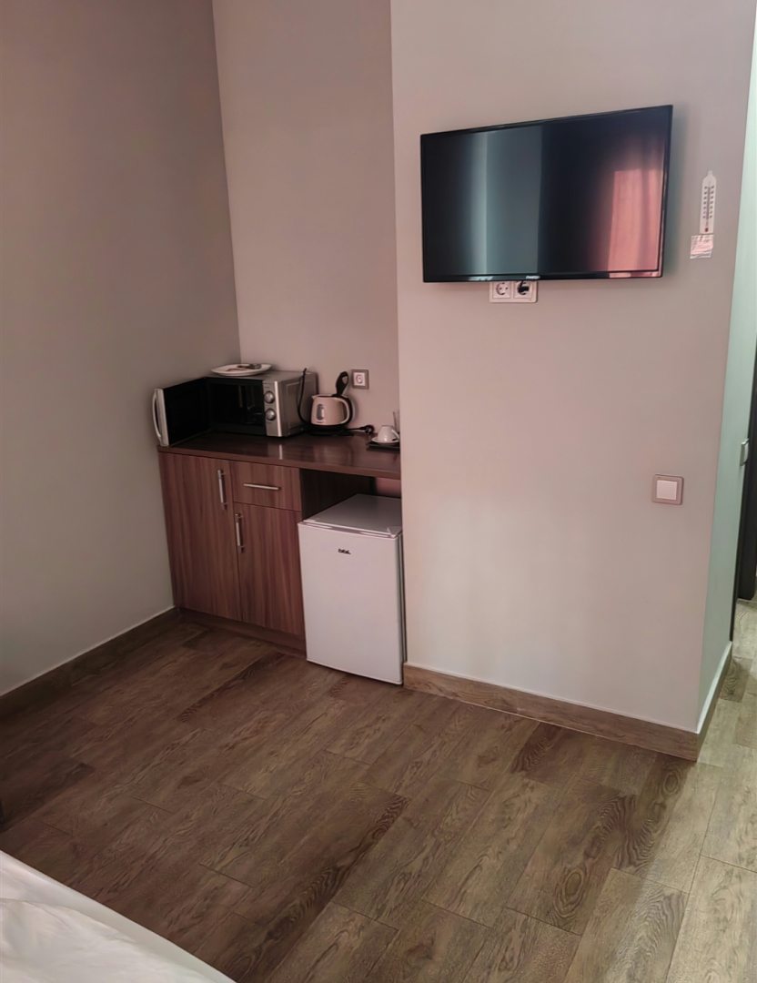 Отличные номера, новая мебель и аппаратура. В номере есть все необходимое. Идеальная чистота! Чистейшее бельё. В шаговой доступности есть кафе, где можно взять еду на вынос.
