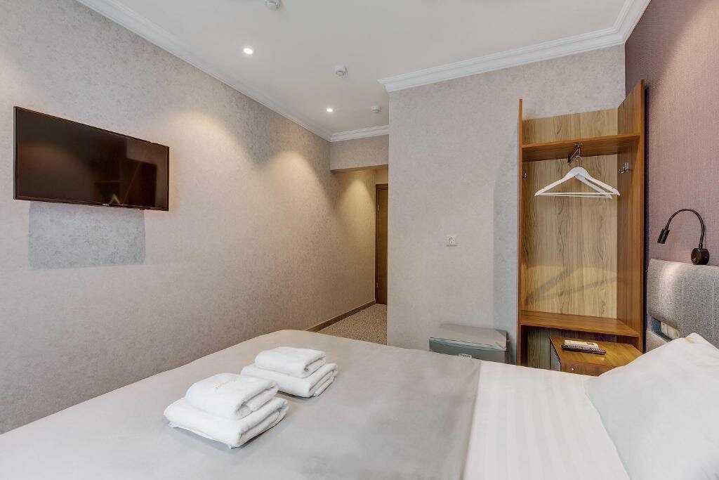 Отличный чистый отель с доброжелательным персоналом ,а также можно заказать вкусный завтрак В номере чисто,достаточно места , имеется все как в описании ,мы семья из 3 человек ,с ребёнком, бронировали полулюкс