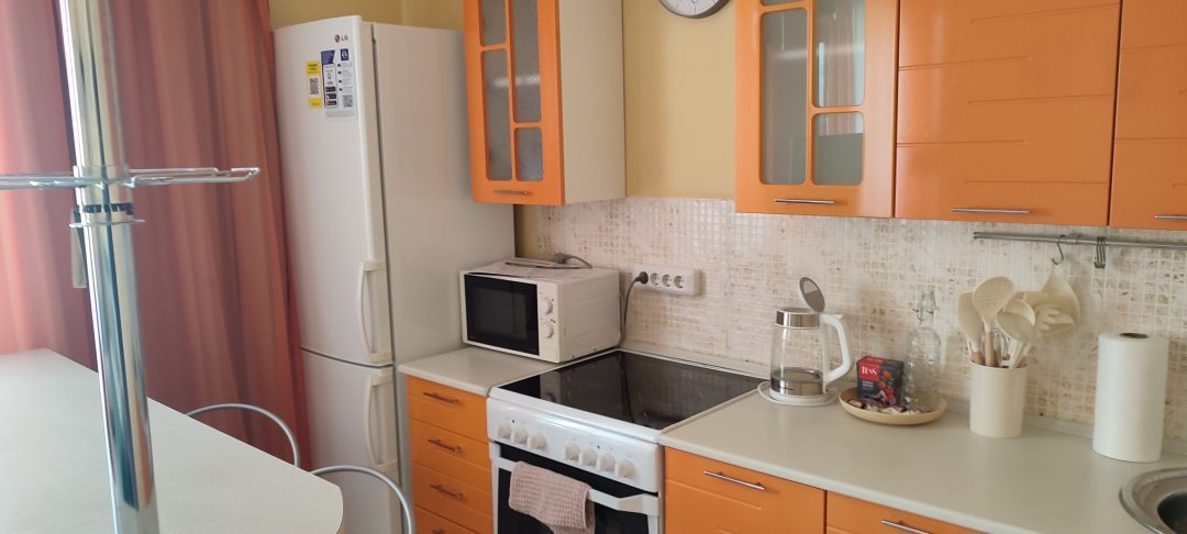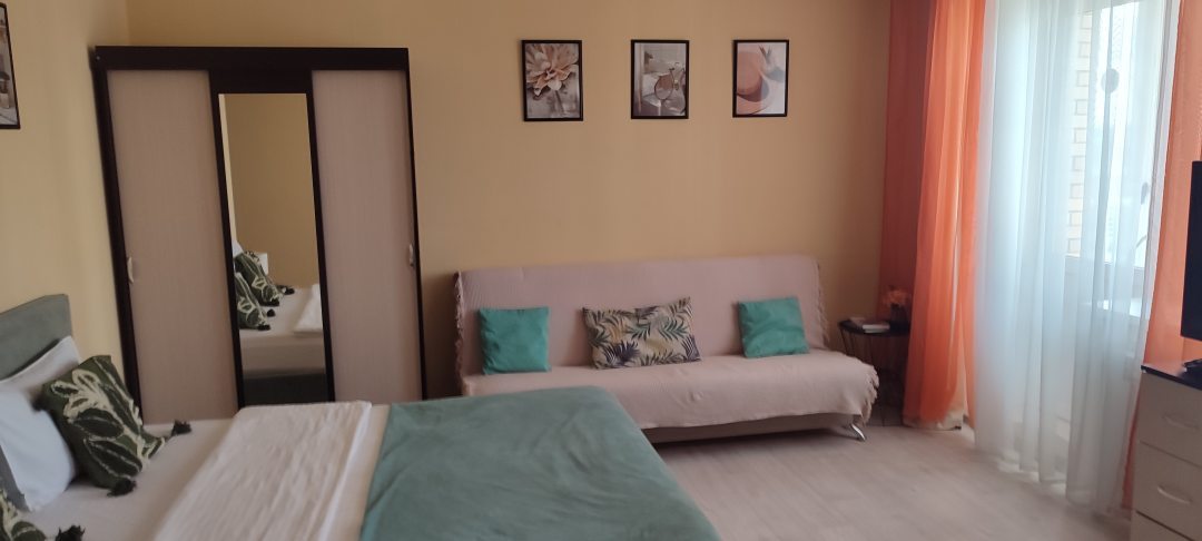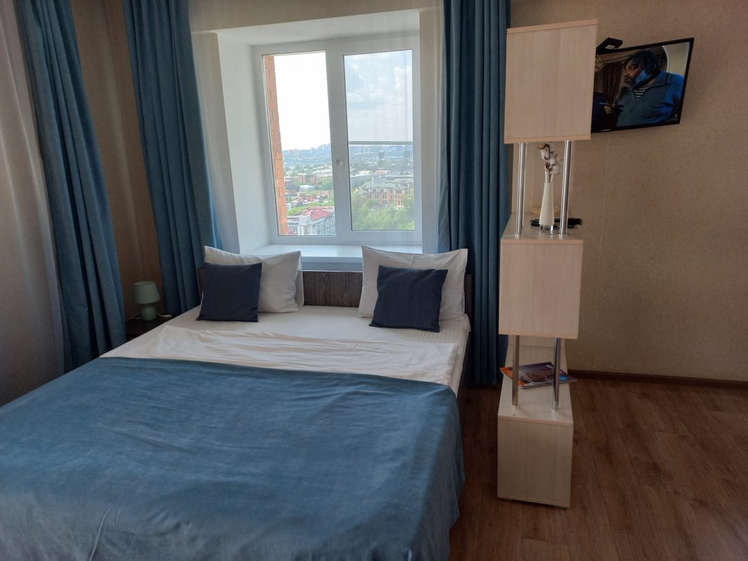 Шикарный номер на 15 этаже: весь город, как на ладони! В номере всё есть: и ванная комната, и зона кухни, бытовая техника, мультимедиа, словом, всё, чтобы чувствовать себя комфортно, как дома. Очень красивый вид из окна, лоджия для отдыха. Расположен в двух шагах от центра, Модного квартала и Яркомолла. Апартаменты зашли, приеду ещё!