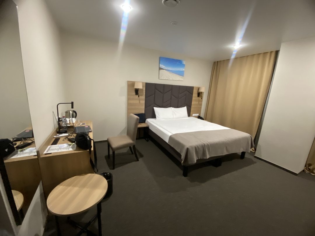 Хорошее расположение отеля. Номер чистый и просторный. Панорамные окна - потрясающе, вид почти на весь город с 7-го этажа. Встречаешь и рассветы и закаты. Приятный и доброжелательный персонал.