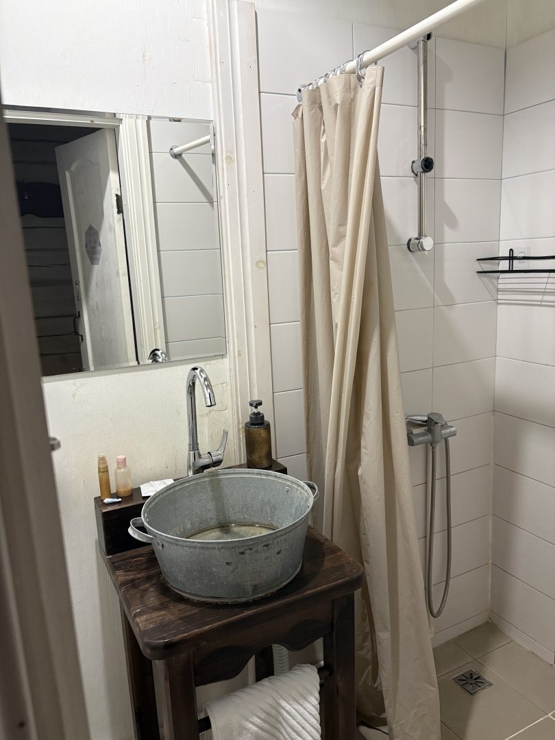 Уютное место, брусовый дом, дышится легко, высокие потолки, оригинальная ванная комната. Ну очень душевно!